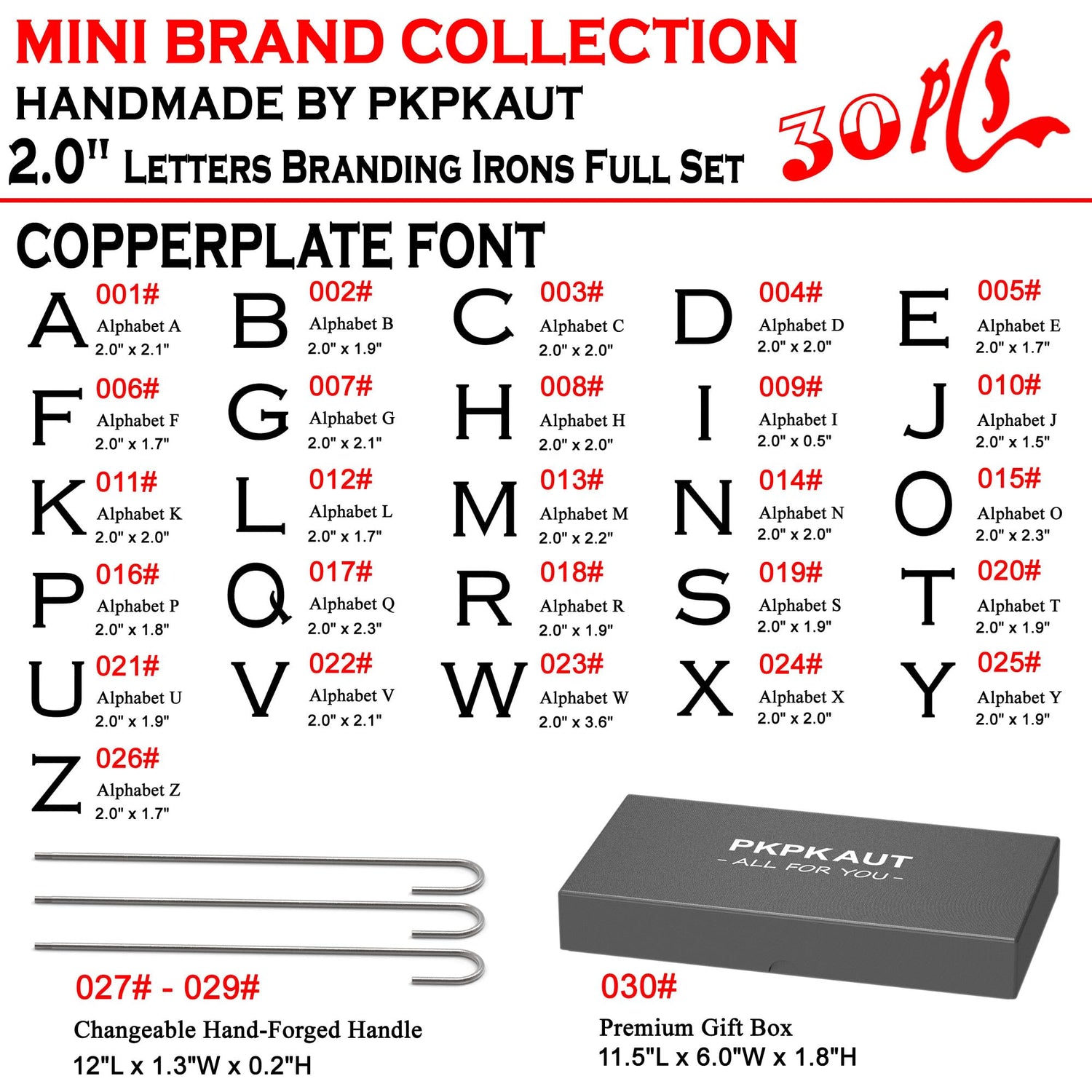 - 【Letters Full Set】 ➤ The PKPKAUT wood branding irons is a high quality custom woodworking tool that includes A-Z letters Branding Irons and 3 changeable 12" hand-forged handle. All in a toolbox–for keeping everything well-organized. Just about anything you like! The possibilities are endless.