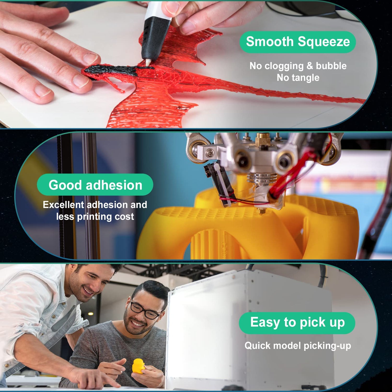- 【Universal Compatibility】Our PLA filament is your all-in-one solution, compatible with all FDM 3D printers and 3D printing pens sporting 1.75mm nozzles in the market. It melts perfectly, feeds smoothly and steadily, without causing any nozzle or extruder blockages. We've got rave reviews from users of various brands. No matter which brand of printer you own, this filament is ready to work its magic.