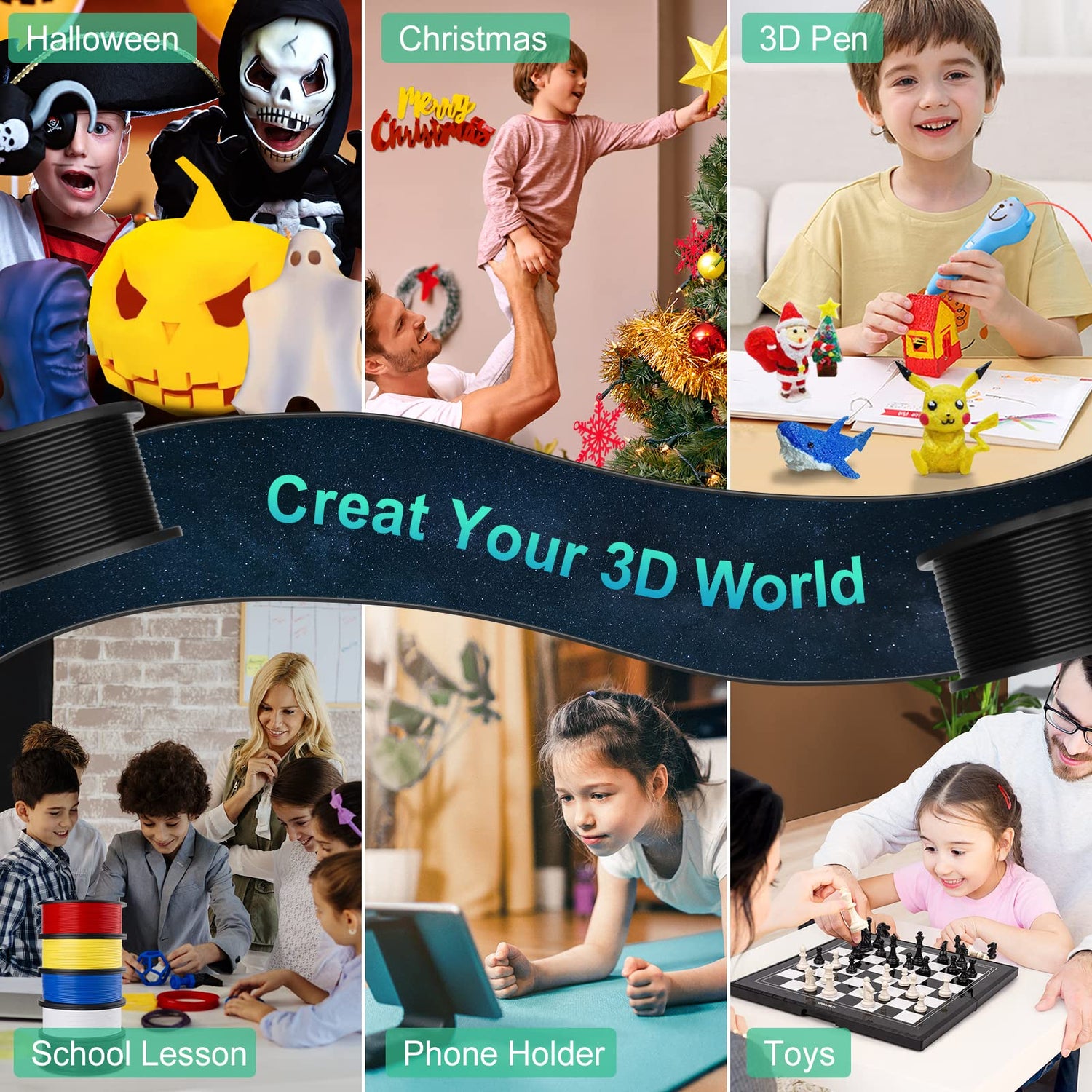 choosing our 3D printer filament pack is not only satisfy multible colors, but also can unleash your kids creativity maximum.