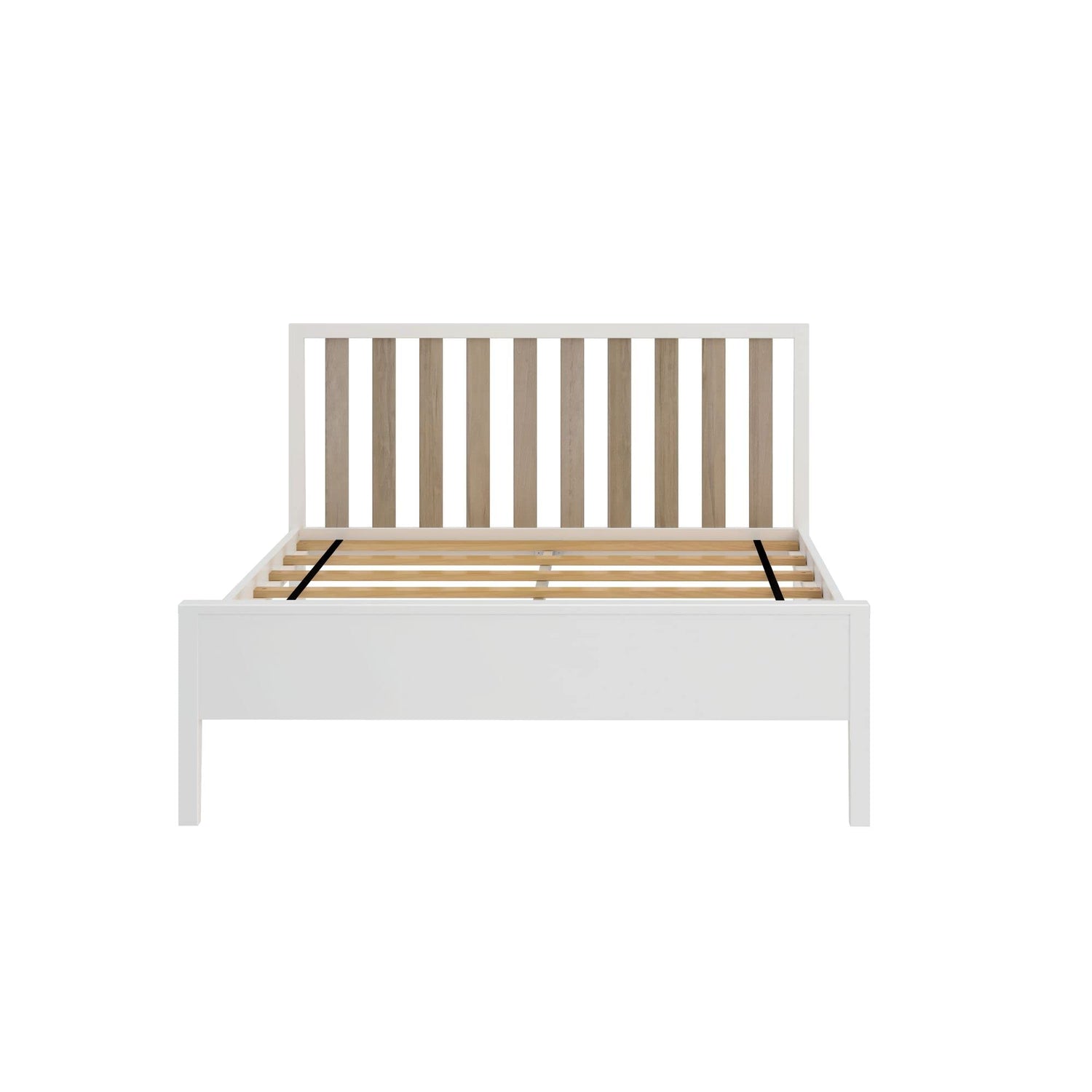 Modern Solid Wood Full Bed Frame with Slatted Headboard in White/Blonde by Plank+Beam