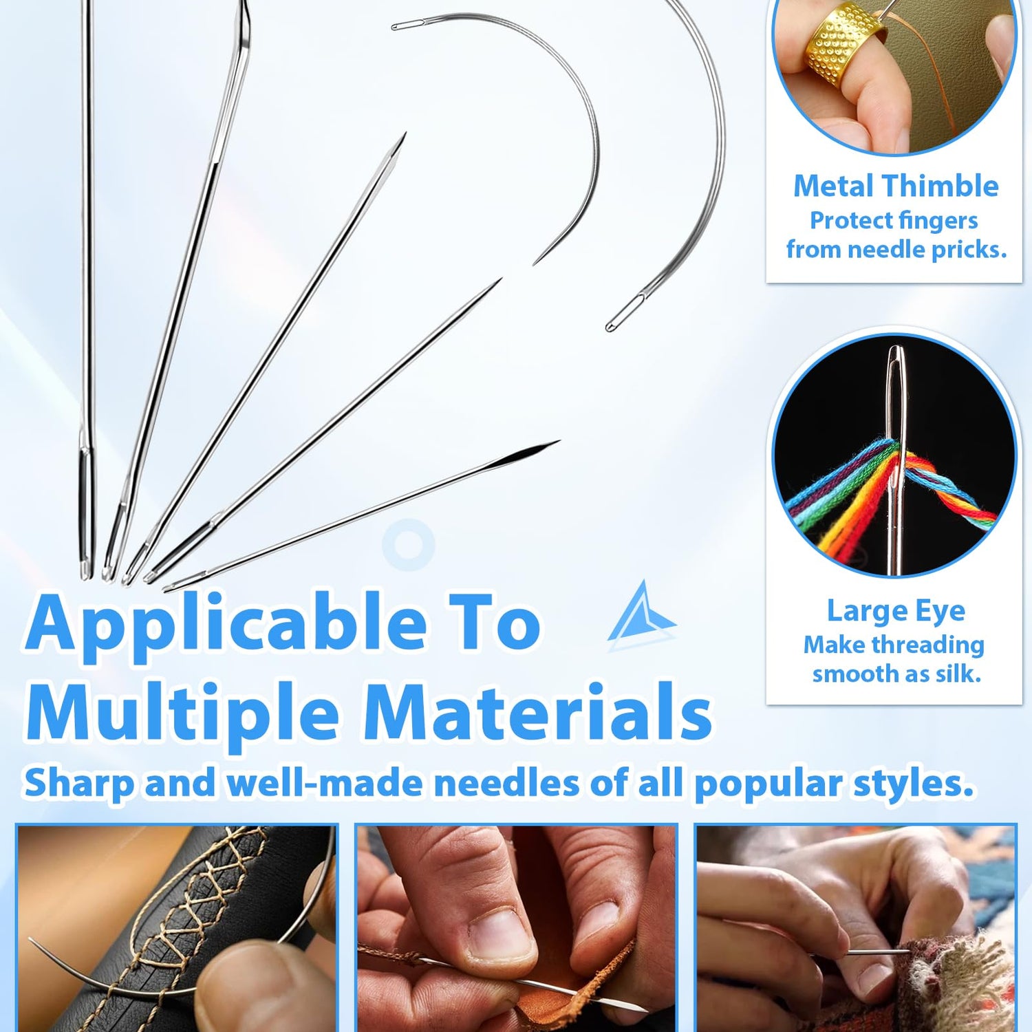 - 【Various Sewing Leather Needles】- Our leather sewing kit features needles of various sizes and shapes, including blunt needles, pointed needles, triangular pointed needles, and curved needles. These needles are strong and sharp, designed to handle tough leather materials.