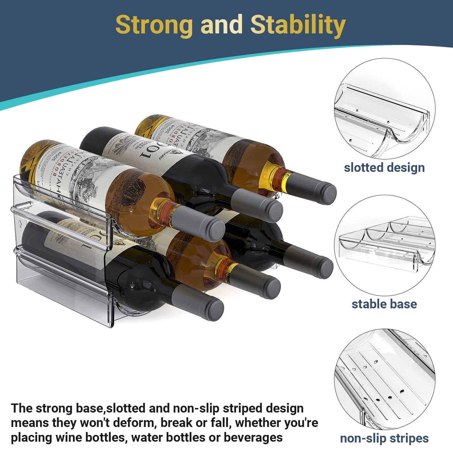 - Space Saving & Protection: Each rack holds up to 3 wine/bottled beverages, It features a stackable design and the stable structure prevents bottles from shaking, tilting, or falling over.