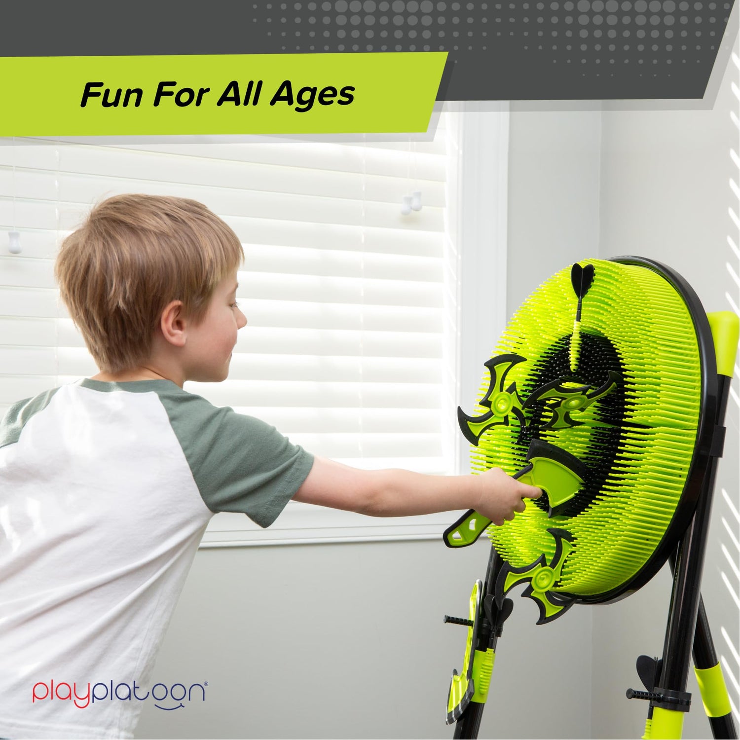 Play Platoon Kids Axe Throwing Game for Backyard, Axe Throwing Set for Adults & Kids, Includes 3 Plastic Hatchets, 3 Throwing Stars & 3 Darts with Bristle Dart Board for Indoor & Outdoor Fun
