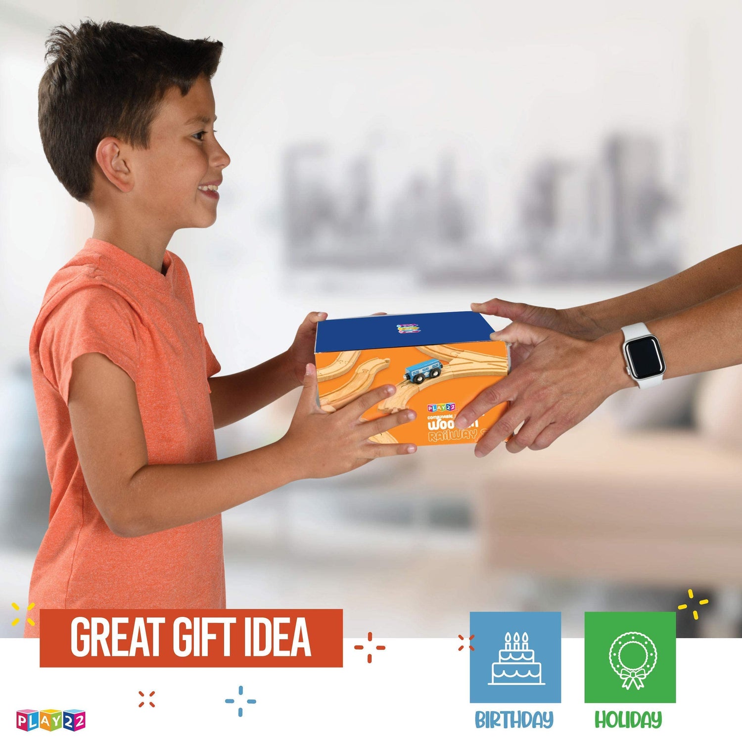 Wooden toy train fits on most wooden train table. toy trains for kids is a Great Gifts For Boys And Girls - Original - By Play22
