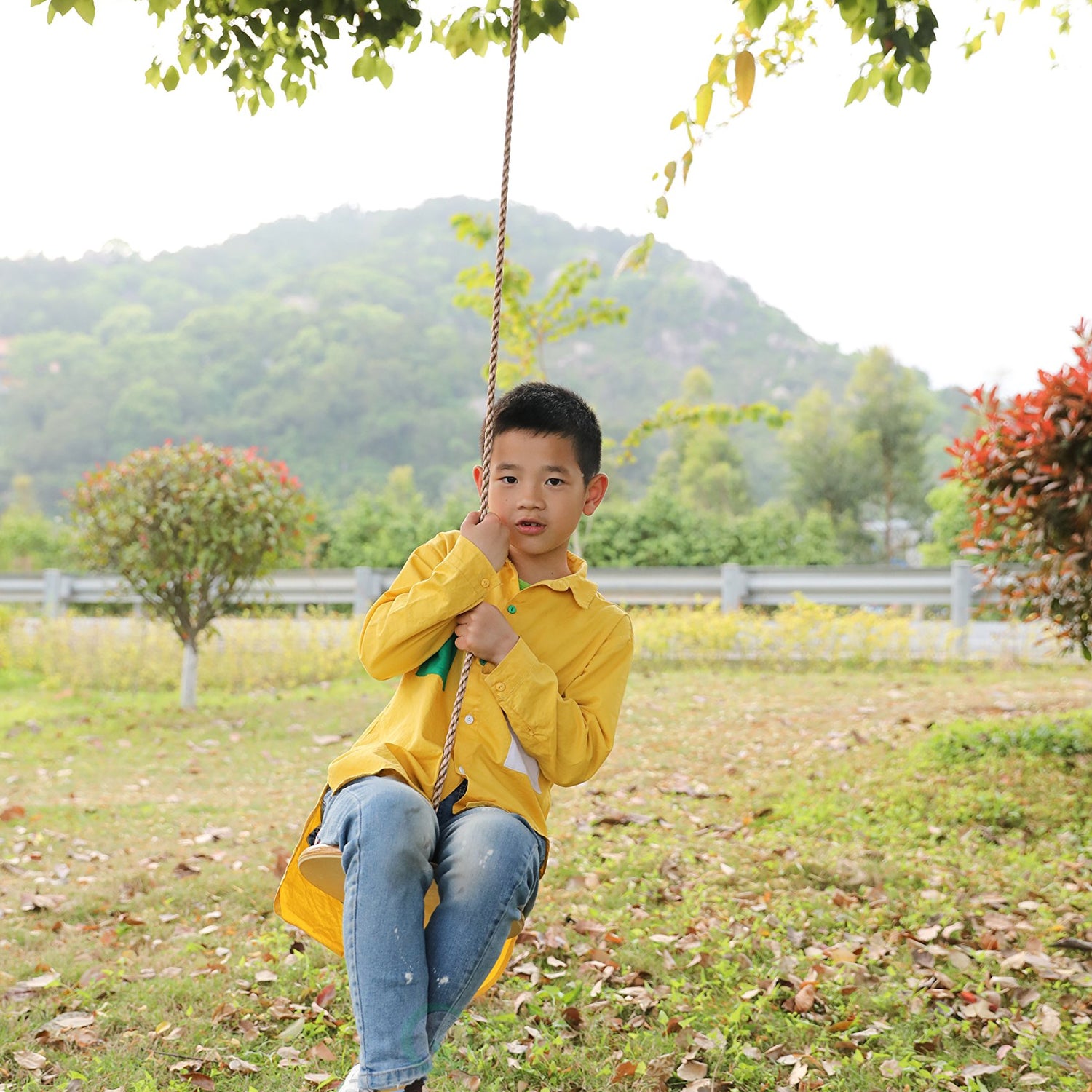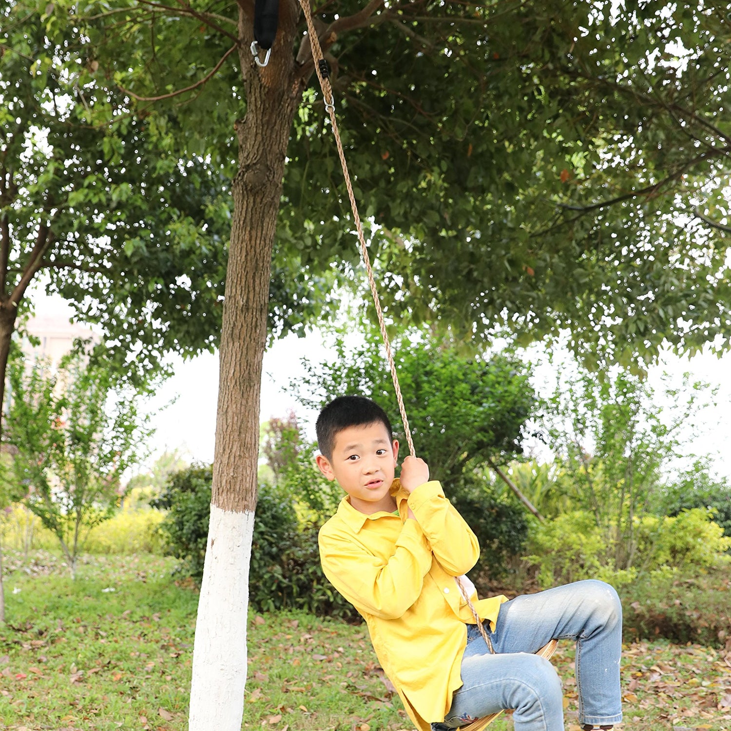 • Round wooden swing suitable for both kids and adults