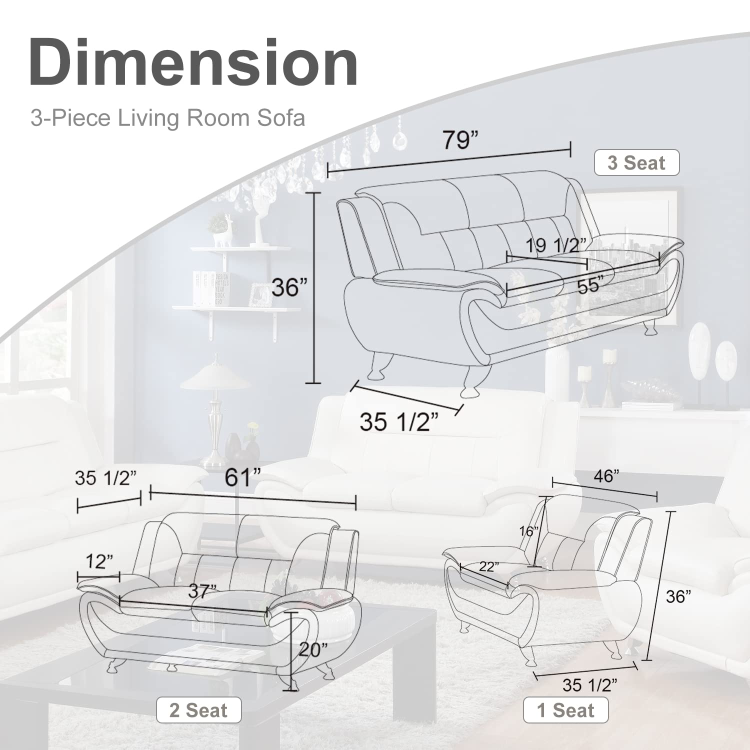 - โจ๐๐ฟ๐ด๐ผ๐ป๐ผ๐บ๐ถ๐ฐ ๐๐ฒ๐๐ถ๐ด๐ป ๐ฆ๐ผ๐ณ๐ฎ ๐ฆ๐ฒ๐--The ergonomic backrest and soft padded seat provide great comfort for you. Leather sofa set provides more comfort for you when enjoying your book or coffee.