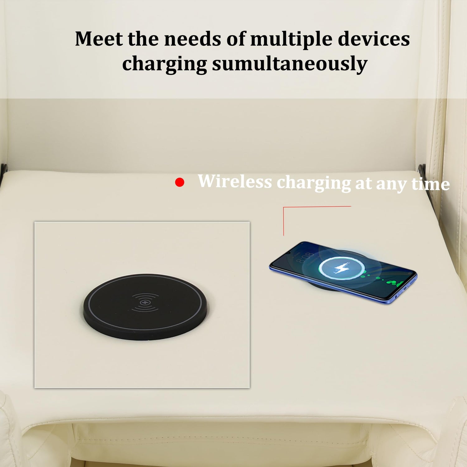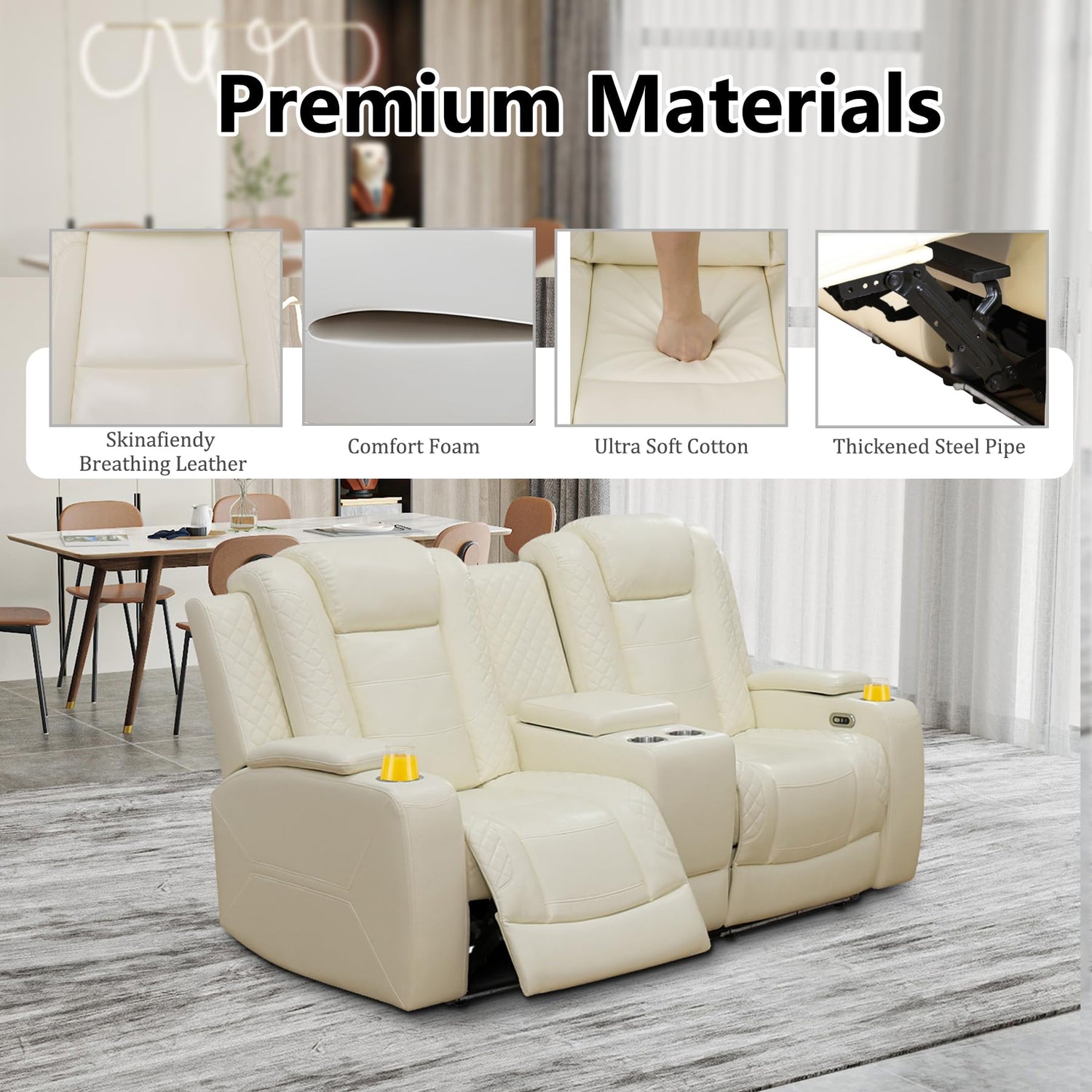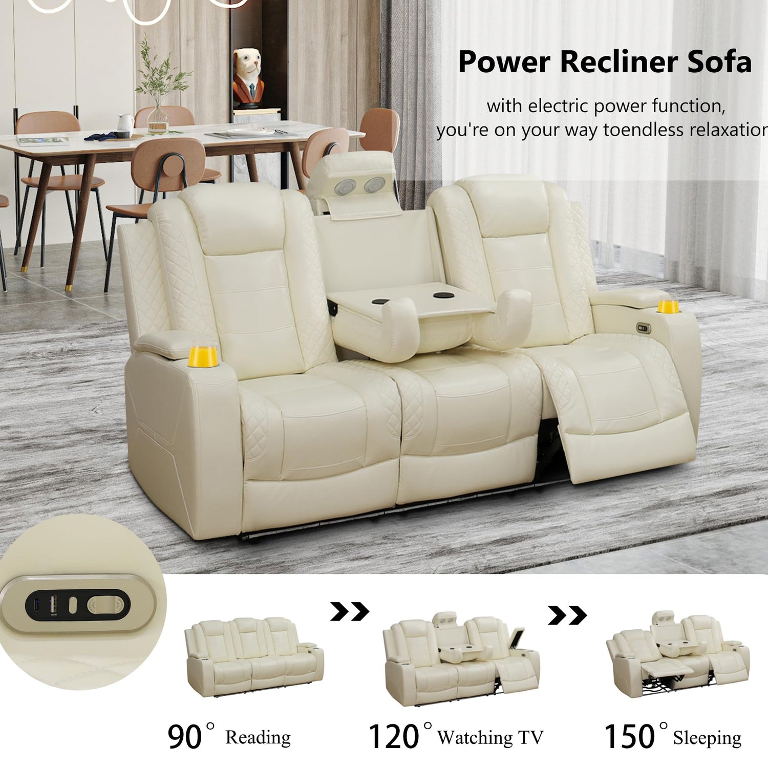 - Flipped Middle Backrest--Flip the middle backrest, this leather sofa set watches as the console rises to reveal wireless charging panels and reading lights, fulfilling all your daily charging needs.