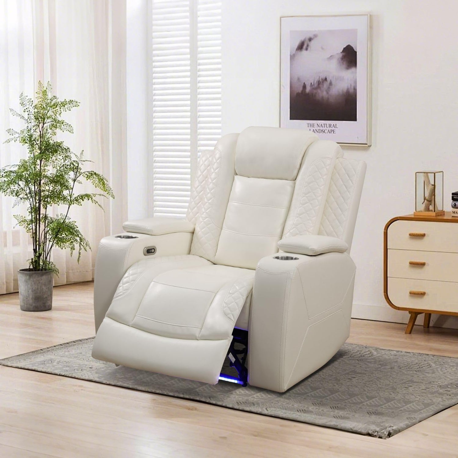 Plithzy Breathable Leather Power Recliner Sofa Set 3 Piece Living Room Furniture Electric Reclining Leather Couches with Cup Holders, LED Light, USB Port and Storage for Home Theater (Cream White)