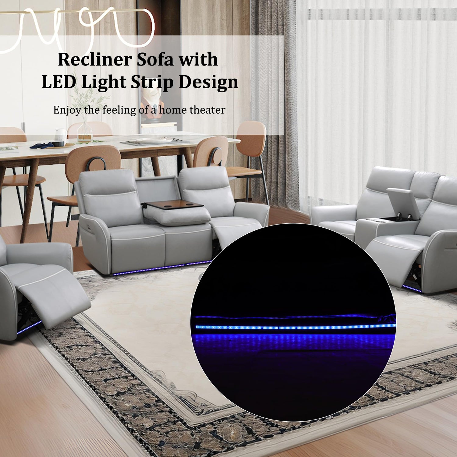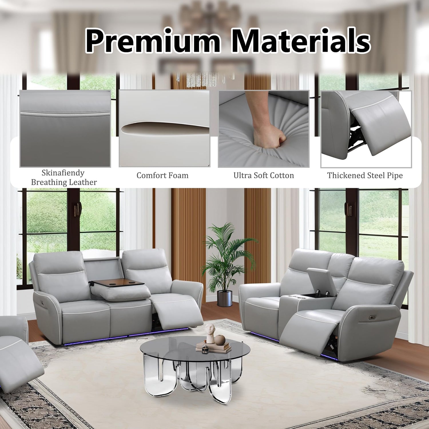 Plithzy Power Recliner Sofa Set Breathing Leather Living Room Furniture 2 Piece Reclining Couches with LED, USB Charging Ports, Cup Holder and Storage (Sofa+Loveseat, Light Grey)