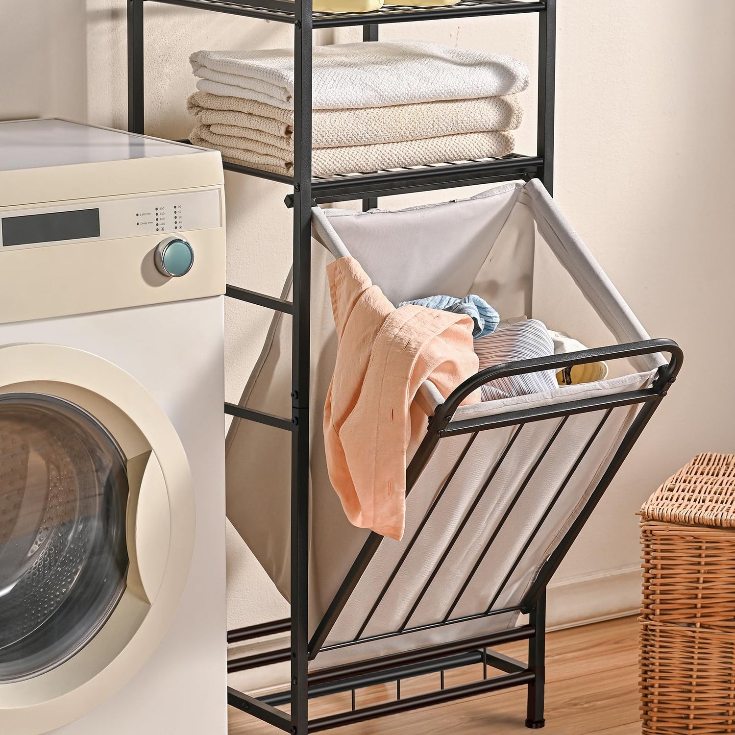 - 【Tilt-Out Laundry Basket】: This tilt out laundry cart features a tilt-out design that helps you to keep your laundry hidden away and prevents the spread of odors, save more space and give you a comfortable and tidy room.