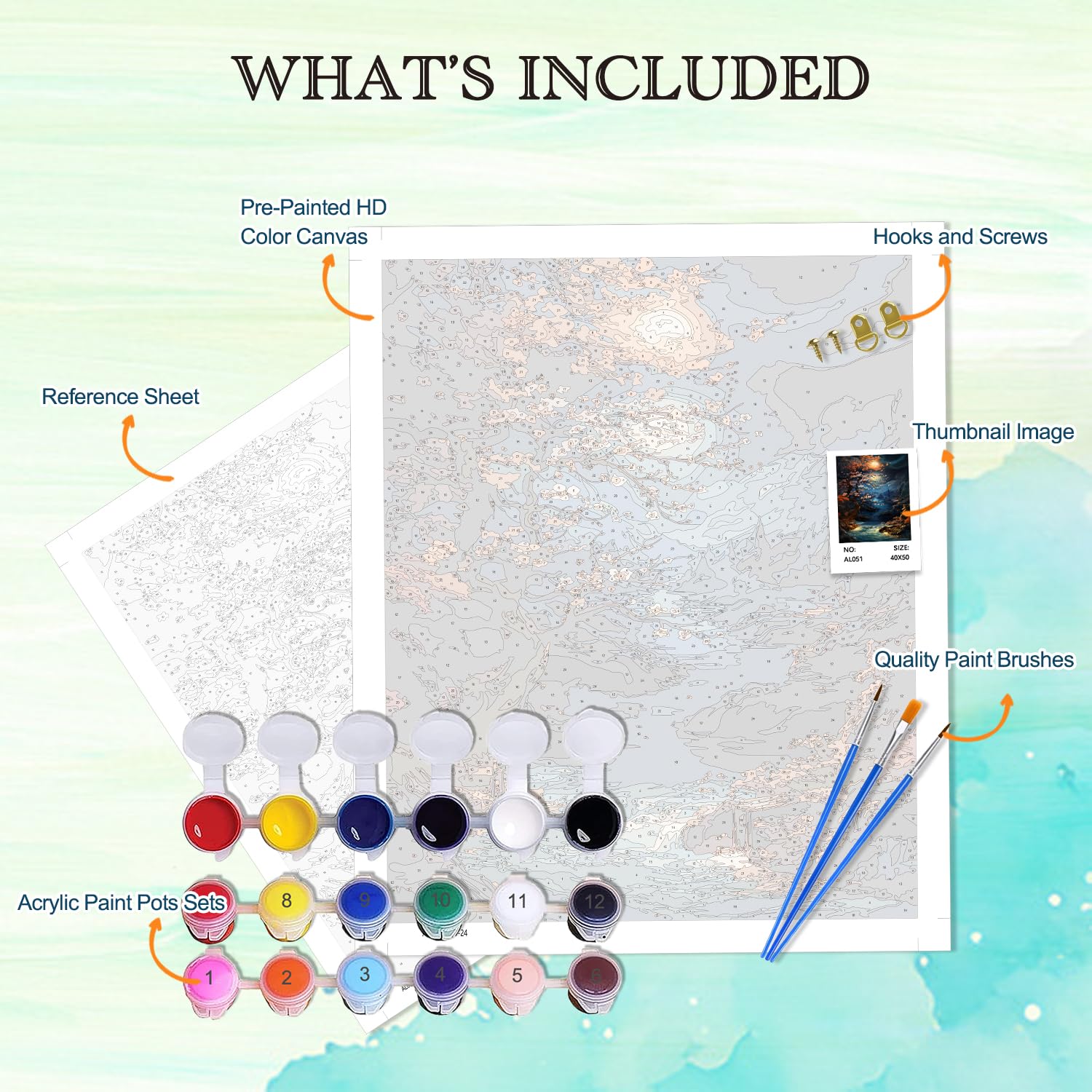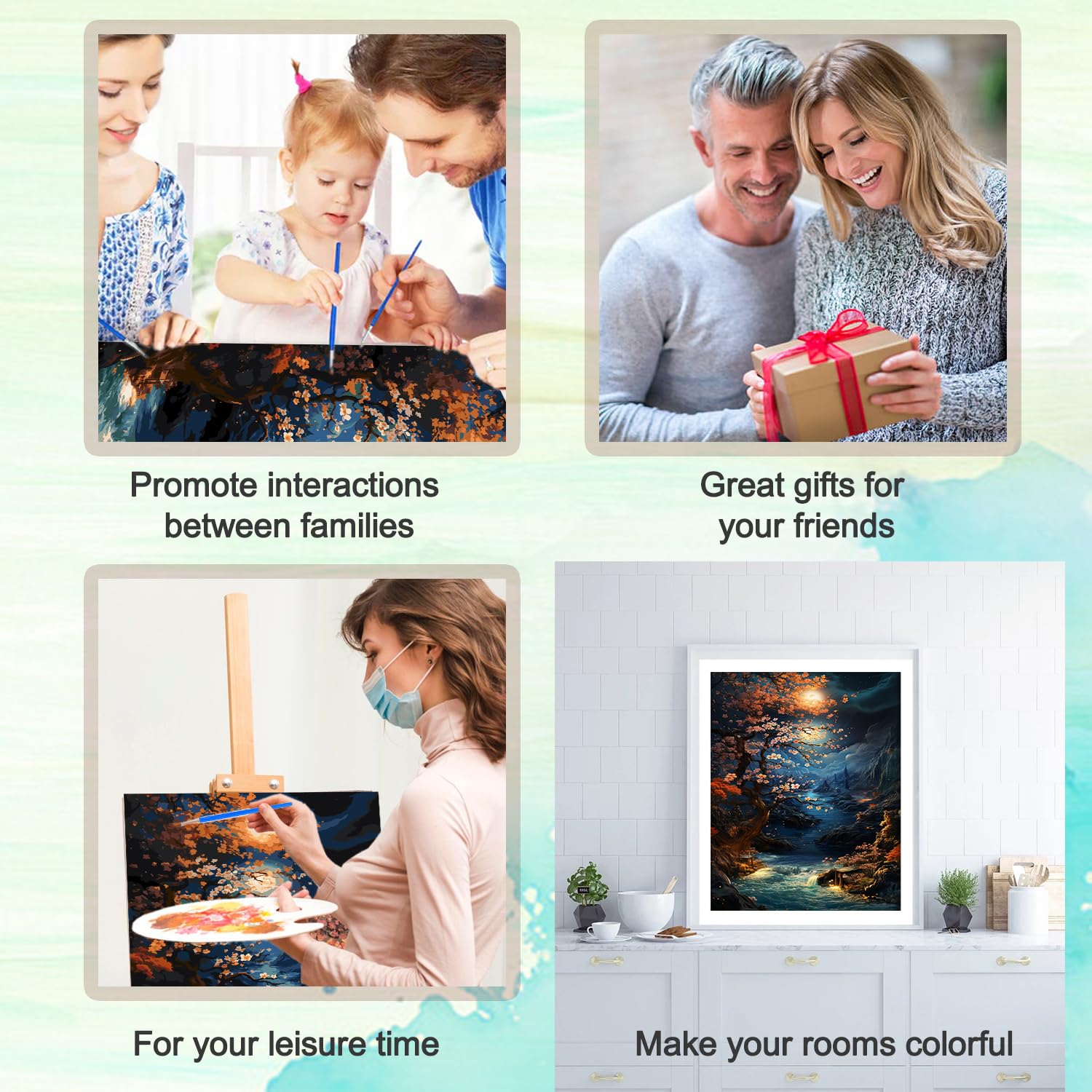 - 4.Creative gifts and decorations:Decorated with paint by numbers kits for adults can be more colorful and wonderful in your own space.The scenery on acrylic paint by numbers kit for adults may encourage you and make you feel great all day.