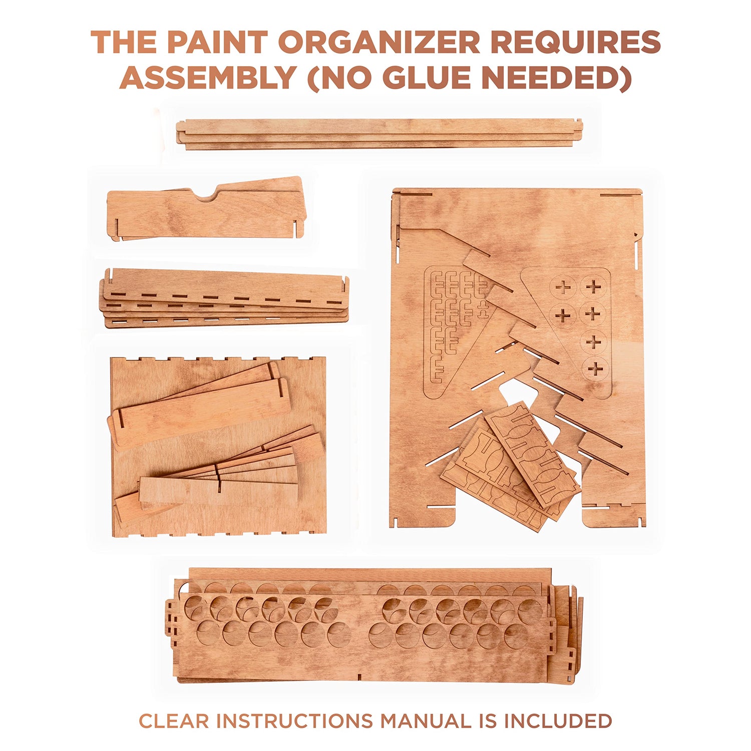 - Easy to assemble – In the package you will find details of wooden Vallejo paint storage rack that should be assembled, and step-by-step instructions. Our advantage is that the wooden paint brush holder is assembled without glue, and wooden fasteners are included in the set, so the finished construction of the Vallejo paint rack will be sturdy and durable. We are also convinced that the process of assembling a Plydolex paint station can also be a fascinating DIY activity!