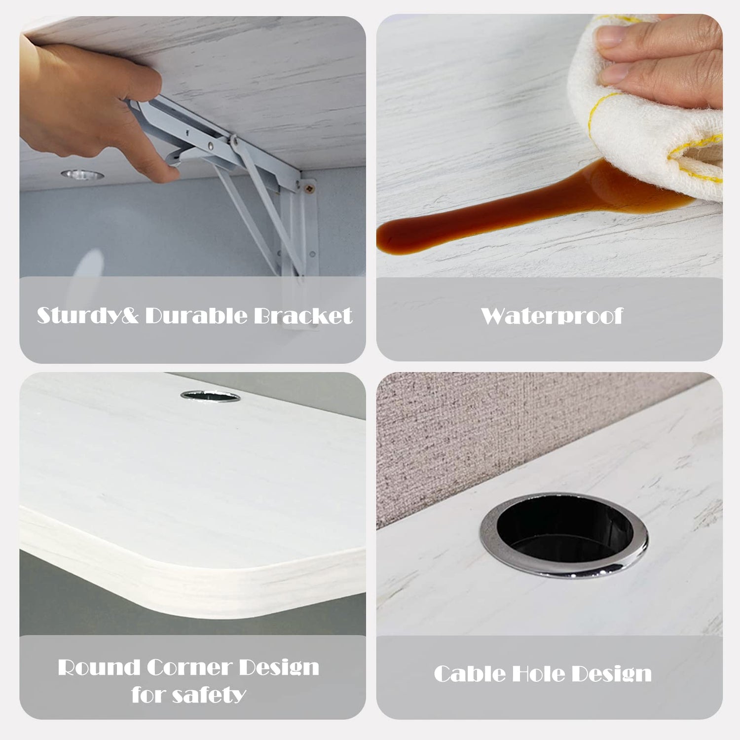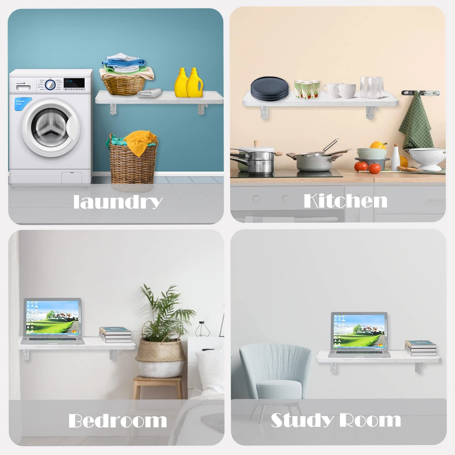 - 【Sturdy & Foldable Design】: The triangle structure of the quality brackets on this wall mounted folding table increases structural stability, providing you with a firm and solid surface. The bracket lever underneath features a single finger click, making it incredibly easy to fold this drop down wall table back down.