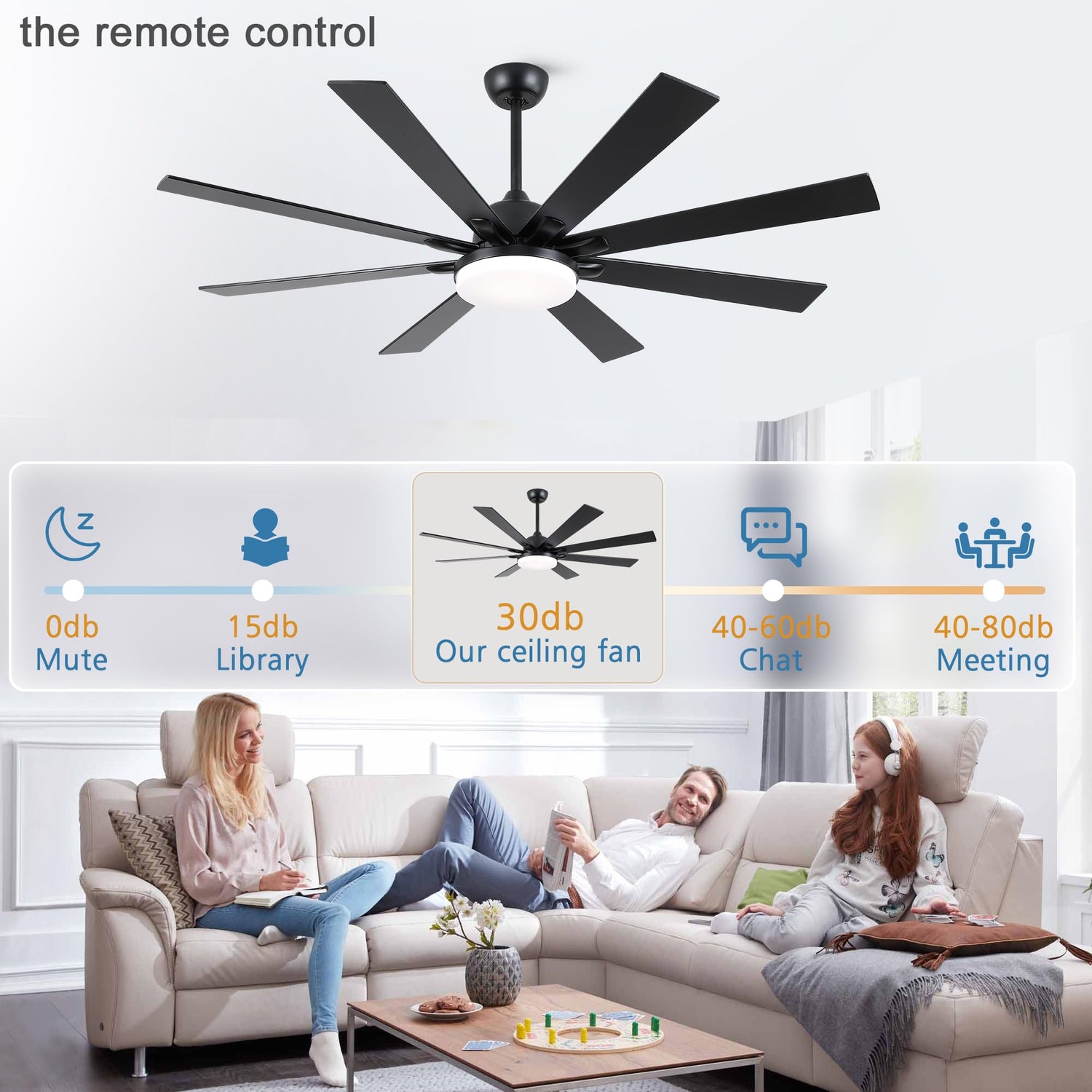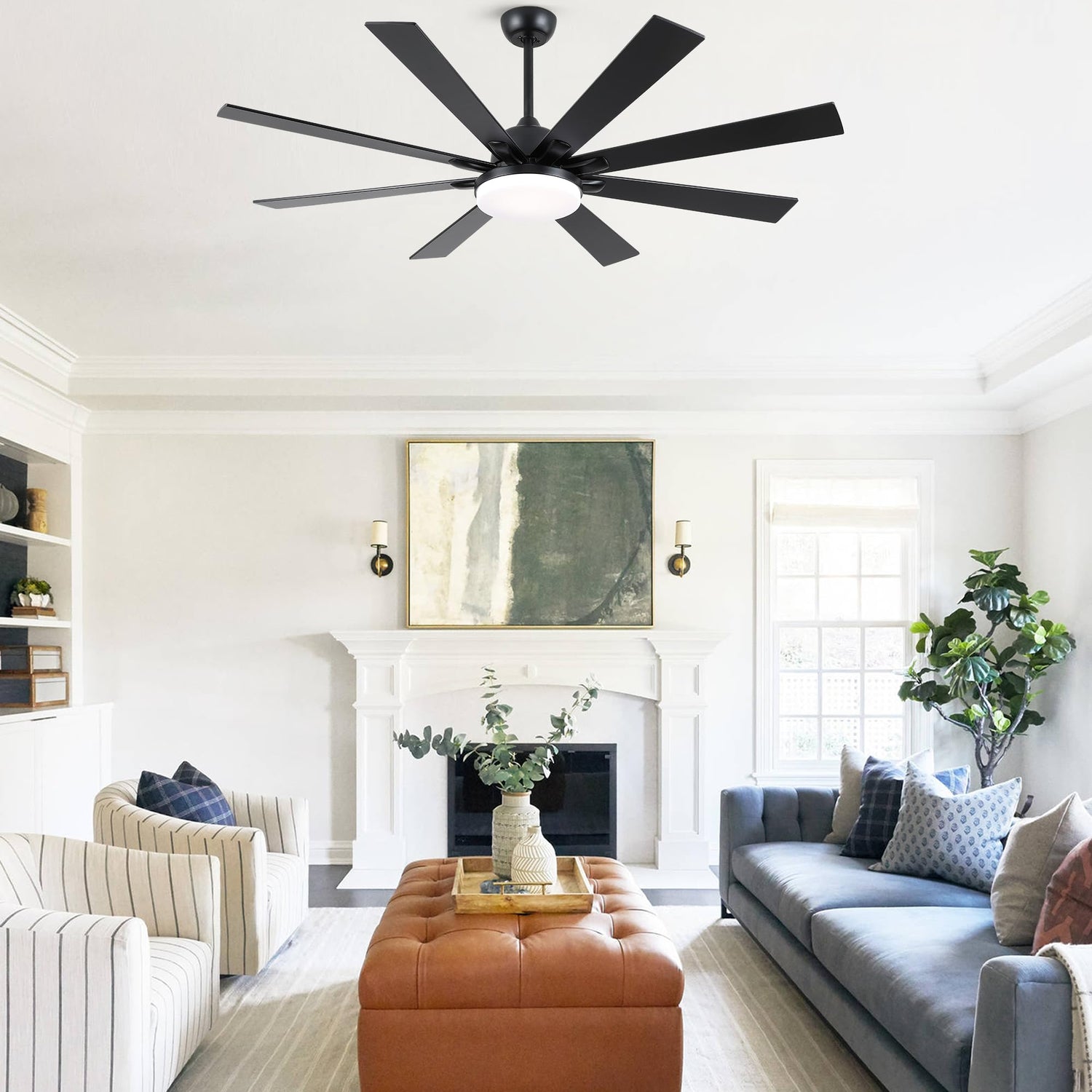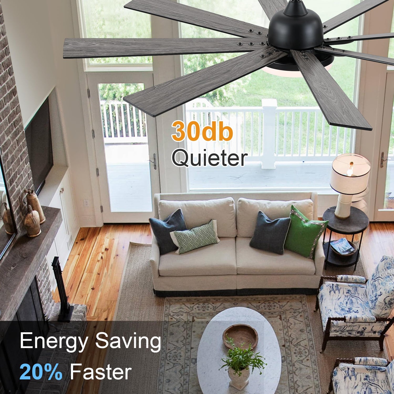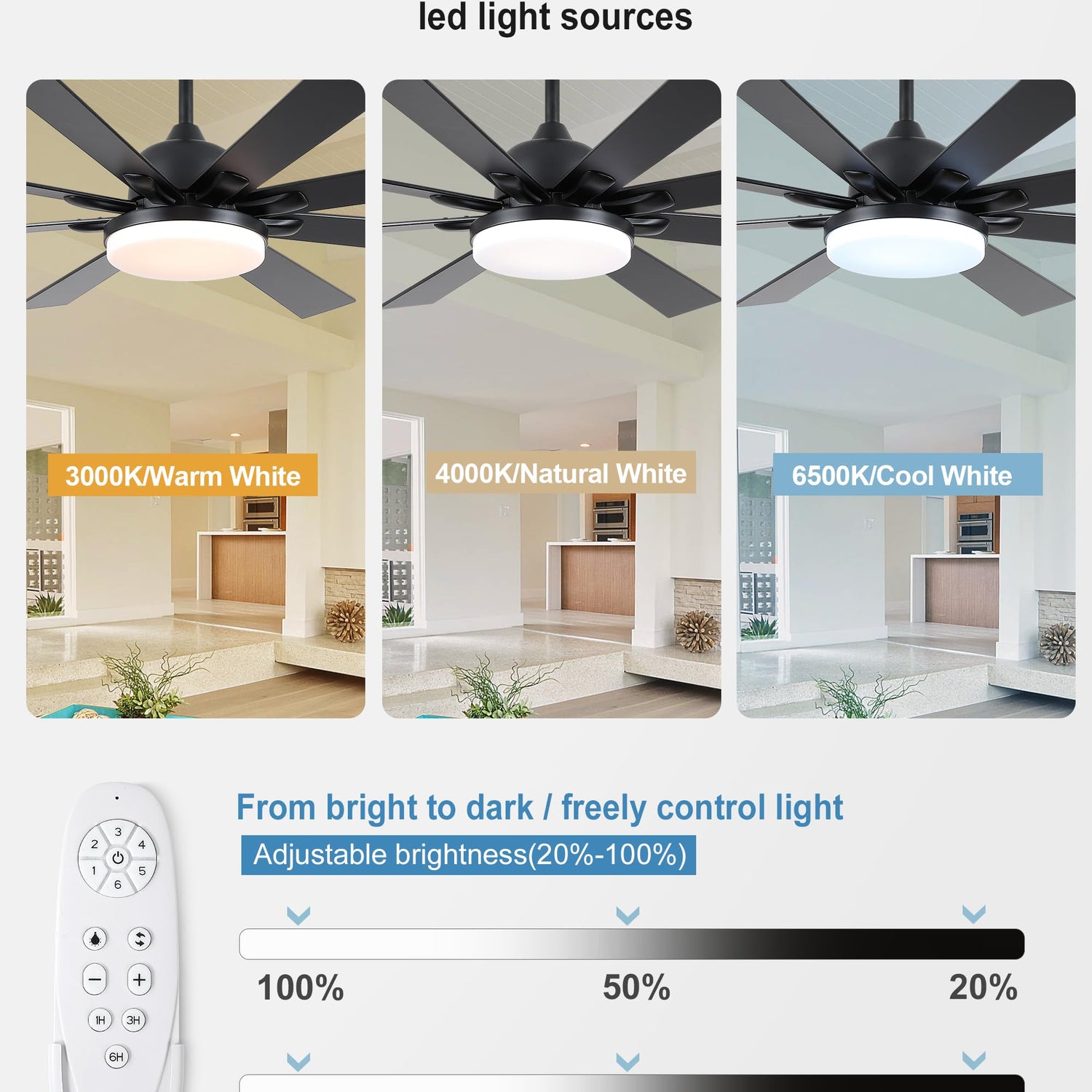 POCHFAN 62 inch Ceiling Fans with Lights and Remote Control, Large Black Ceiling fan with 8 Wooden Blades for Living Room Bedroom Patio, Quiet DC Motor, 3-CCT Dimmable,6 Speed