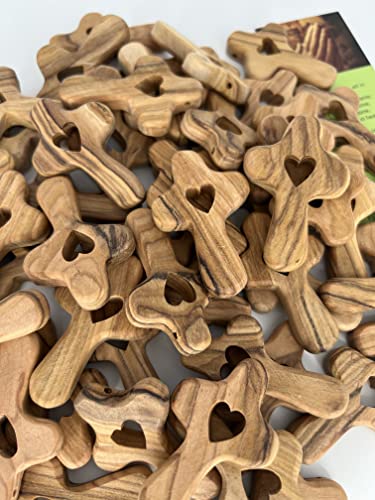 Pocket Cross with Heart, Olive Wood Comfort Crosses from the Holy land, Christian Encouragement Gifts, Wooden Cross for baptism, Small Wooden Prayer Cross (One Cross Only)