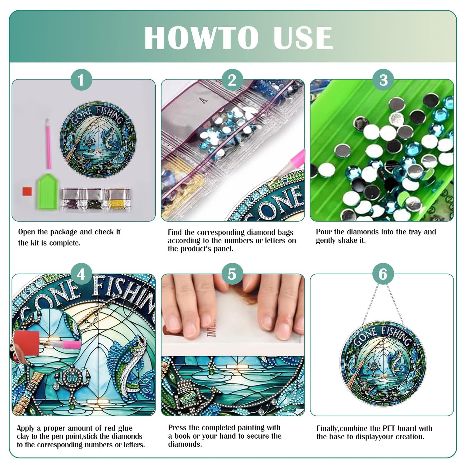 POETRYDRAW DIY Hanging Diamond Art Pendant Kit Hooked Fish, Special Crystal Diamonds Painting Ornament for Adults, 5D Diamond Art Suncatchers Double Sided Board Gem Painting Box Kit