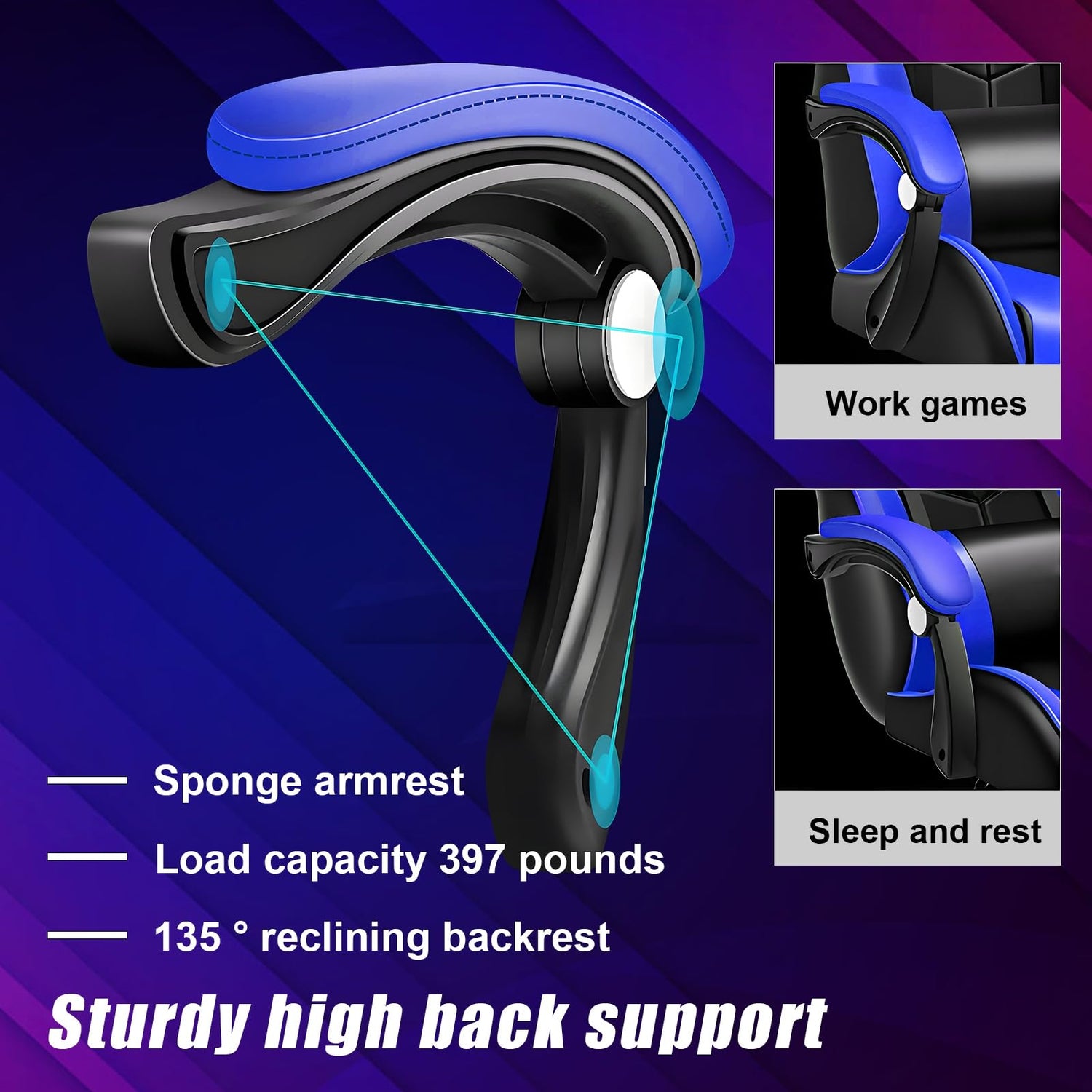 - Adjustable Chair: Seamlessly adapt to your gaming style with gaming chair's flexible design. The backrest smoothly adjusts from an upright 90 degree to a relaxed 135 degree, allowing you to find your perfect angle for play or rest. Paired with a 360 degree swivel seat and 3-class gas lift cylinder for 10cm height adjustment, the chair offers a fully personalized gaming throne that responds intuitively to your every move.