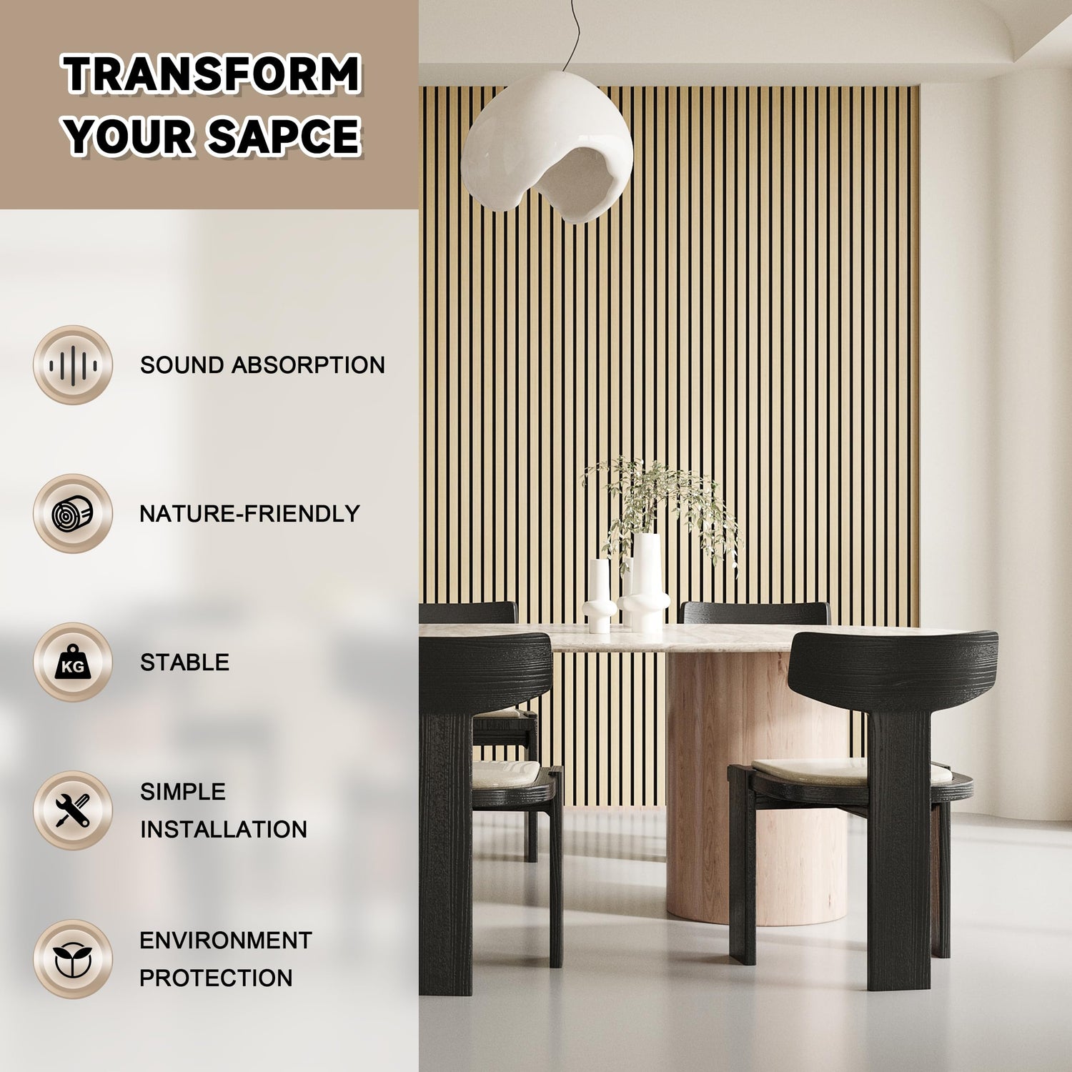 - Superior Sound Absorption: Our wood slat wall panels are crafted with acoustic felt backing and real wood veneer, effectively reducing echoes and background noise, making them ideal for home theaters, offices, and music studios
