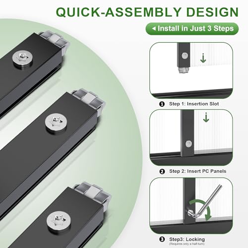 - Super Resistance: 720g PC panels provide greenhouse shelter from rain and snow. Outdoor greenhouse bottom 6cm aluminum alloy frame with eight diagonal support metal rods have superb stability.