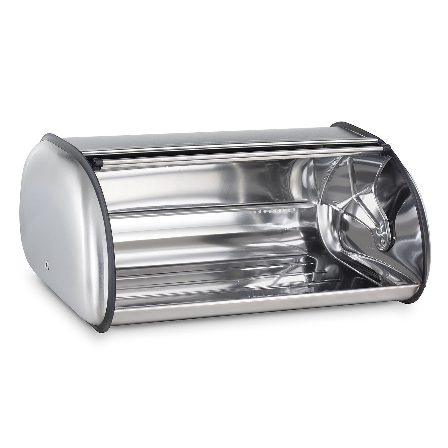 - Large-capacity bread bin made of powdered, painted, 18/8 steel with venting holes to keep bread fresh longer