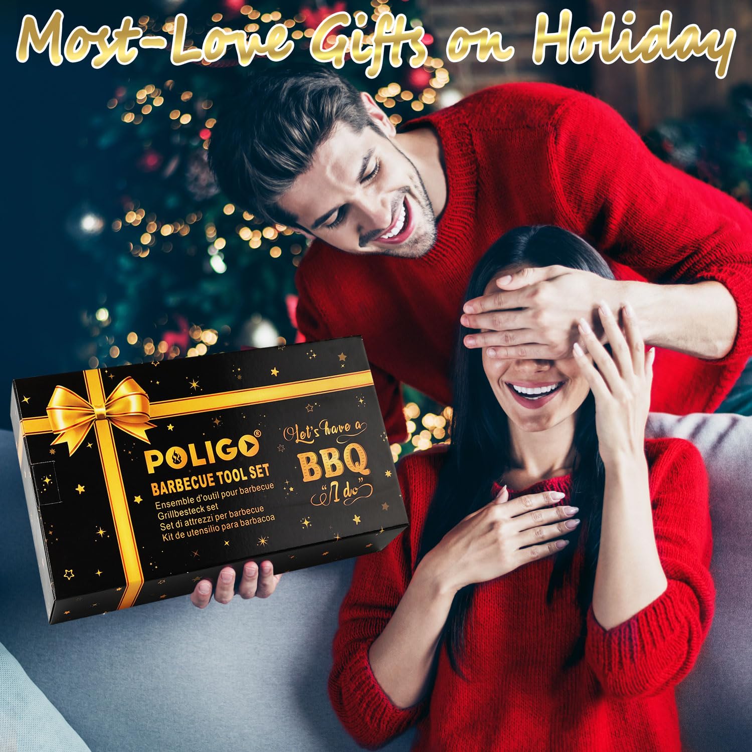 POLIGO 26PCS BBQ Accessories for Outdoor Grill Utensils Set Stainless Steel BBQ Tools Grilling Tools Set for Christmas Birthday Dads Presents, Barbecue Accessories Ideal Grilling Gifts for Men Women