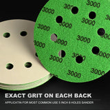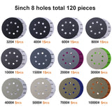 - ASSORTMENT GRITS : 15pcs of each grit 320/400/600/800/1000/1500,5pcs of each grit 2000/3000/4000/5000/7000/10000 and 1 pack 5 inch 8 holes interface pads,can meet almost all of your general polishing requirements.
