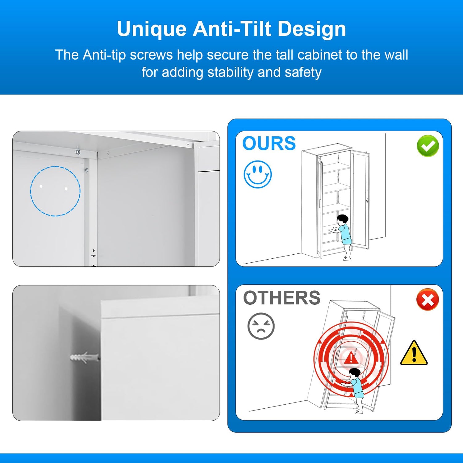 - Crafted & Safe Construction: This bookcase with glass doors and shelves comes with a safety lock to protect your belongings. Includes an anti-tilt mechanism that allows the display cases to be fixed to the wall, providing optimal stability and preventing any potential tipping accidents. In addition, adjustable shelves provide a versatile use of space, while doors have a magnetic function that easily closes automatically.