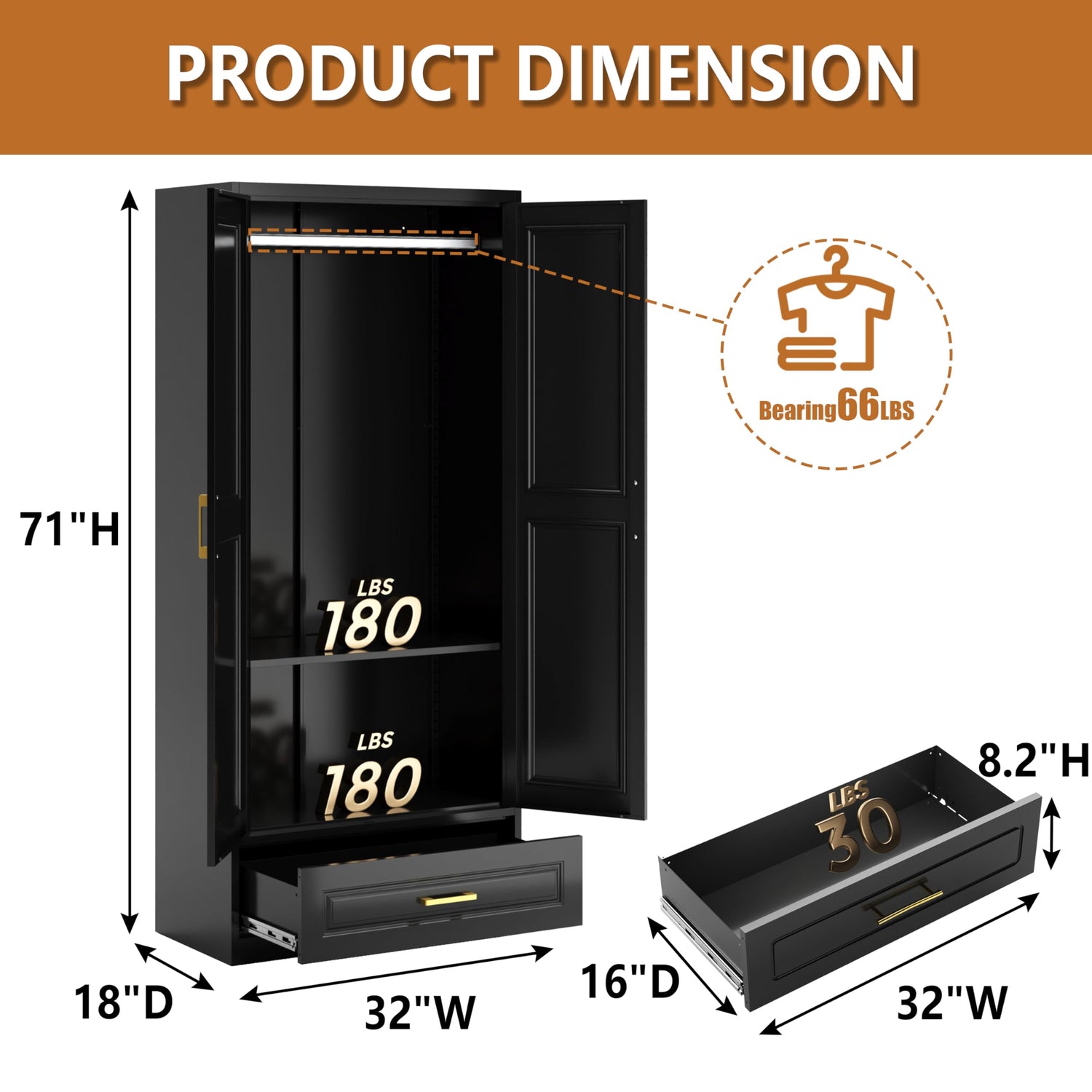 - [STURDY AND RELIABLE] Crafted from thickened steel panel, this wardrobe cabinet with drawer stands firm and stable. Its robust clothing hanging pole can withstand up to 66LBS loding-bearing, ensuring years of reliable use. Reinforced joints and thick metal panels guarantee no wobbling or collapsing, even when fully loaded with lots of clothes