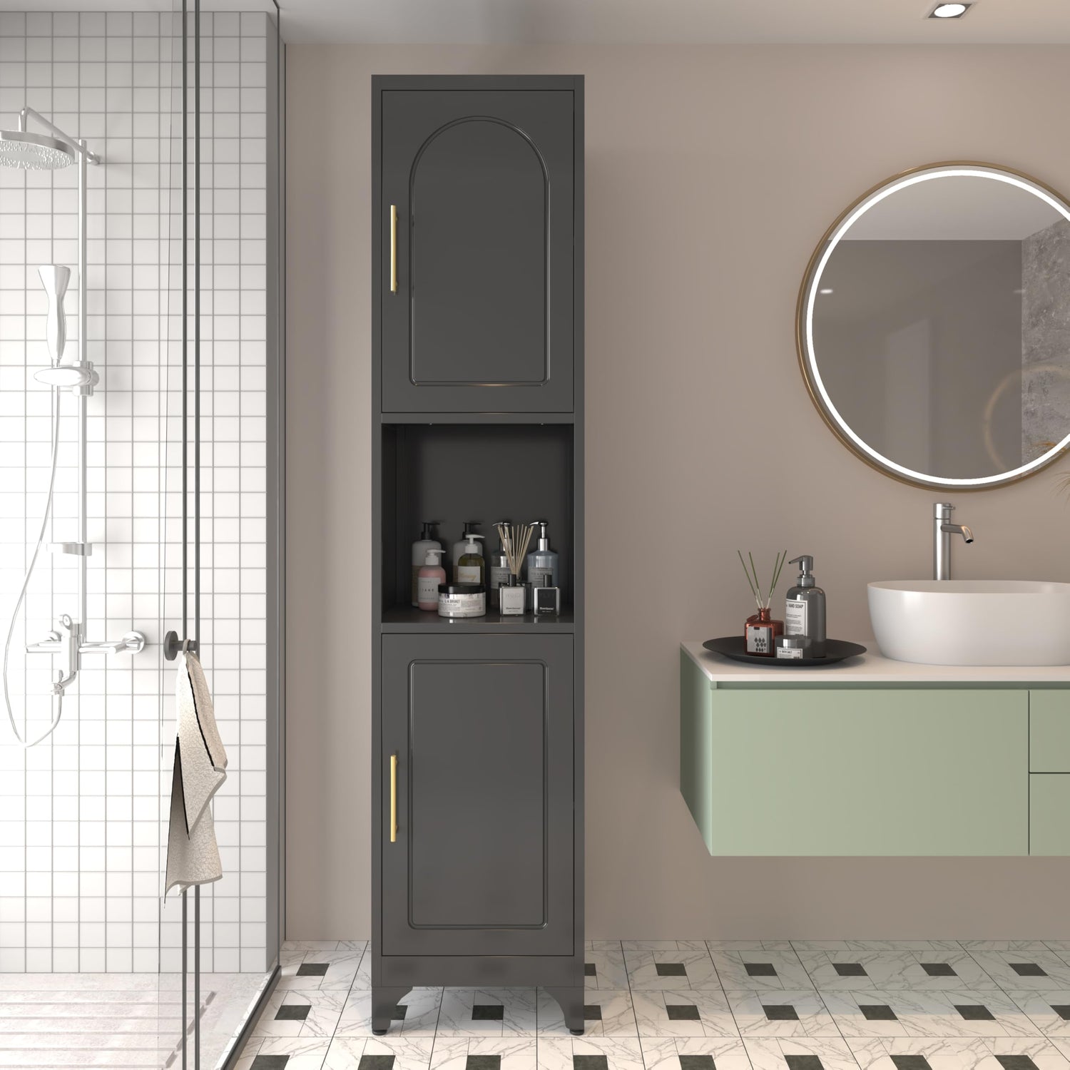 - STURDY & DURABLE: Made with high-quality steel and a hollow design, this freestanding narrow cabinet is built to last, offering reliable storage for towels, linens, cleaning supplies, and more