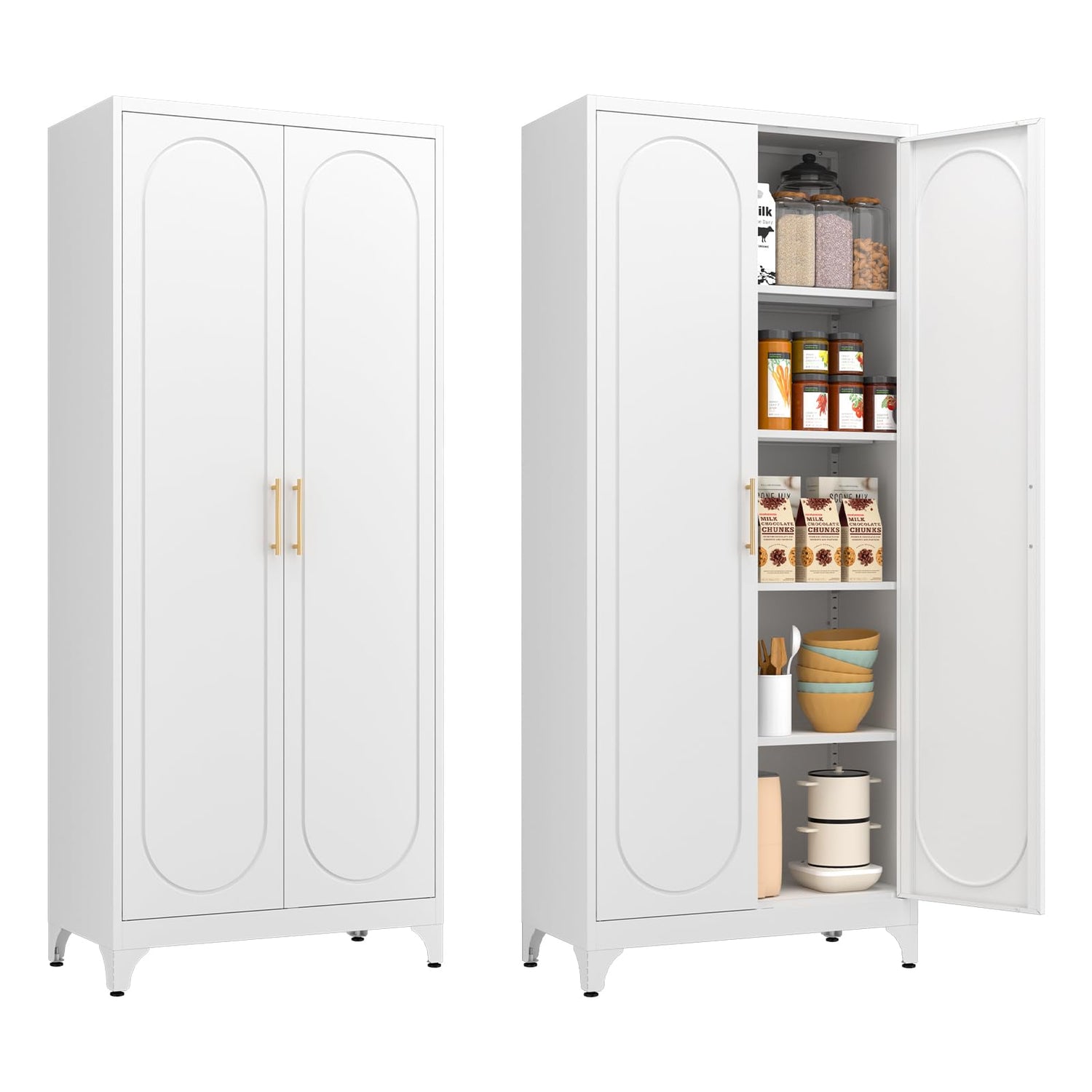 Polup White Kitchen Pantry Cabinet, 75" Tall Metal Pantry Storage Cabinet with Doors and Adjustable Shelves, Food Pantry Cabinets with Handle, Freestanding Cupboard for Living Room-Assemble Required