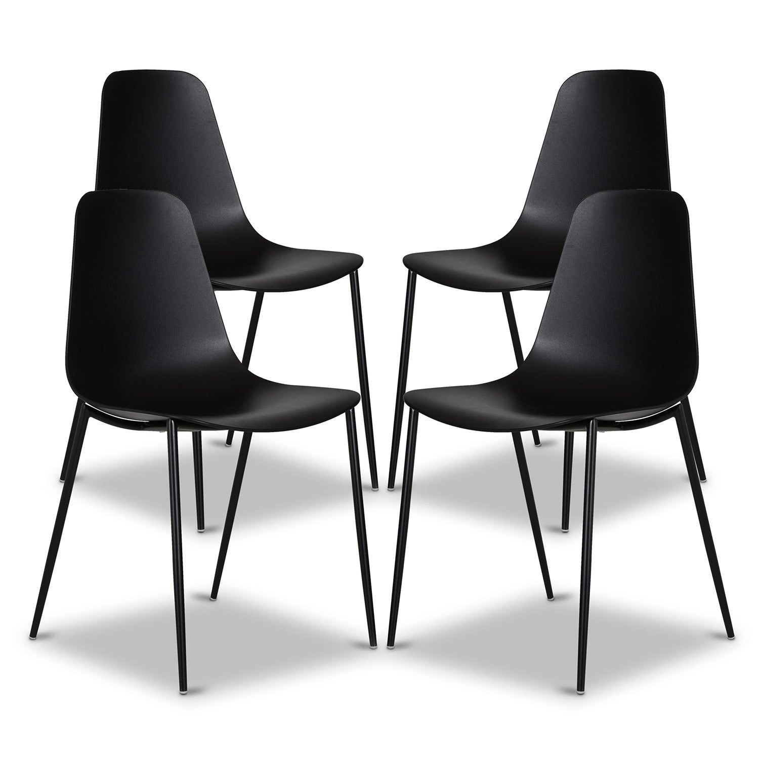 POLY & BARK Isla Modern Kitchen Chairs Set of 4 - Plastic Dining Chair with Metal Legs - Quick Assembly Simple Cafe Chairs Plastic for Indoor or Outdoor - Ebony Black