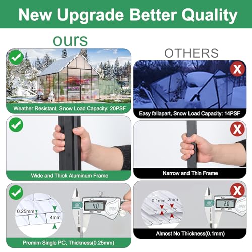 - 【Sturdy Frame】Our greenhouse kit boasts a robust rust-resistant aluminum frame designed to withstand various weather conditions. 2 skilled enthusiasts can assemble this greenhouse kit in just 4 hours. Introducing patented technology, Easy assembly, saving you 50% of your time. Gone are the days of tedious setups. With a simple push and locking screw, our Quick Connect ensures a reliable, secure, and swift link-up.