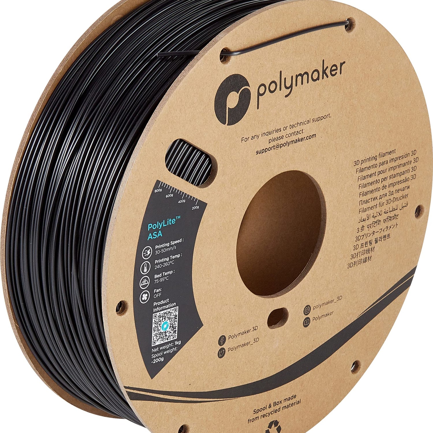 Polymaker ASA Filament 2.85mm Black, 1kg ASA 3D Printing Filament, Heat & Weather Resistant - ASA 3D Printer Filament Perfect for Printing Outdoor Functional Parts