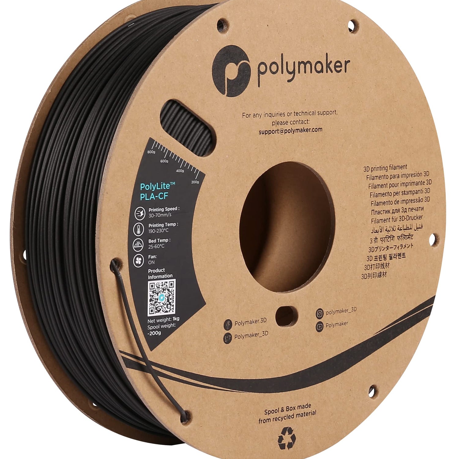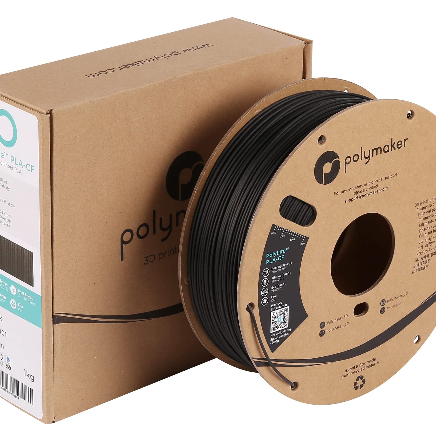Polymaker Carbon Fiber PLA Filament 1.75mm, Carbon Fiber Reinforced 3D Printer PLA Filament 1kg - PolyLite 1.75mm Carbon Fiber 3D Printing PLA Filament Strong & Easy to Print & Matte PLA-CF
