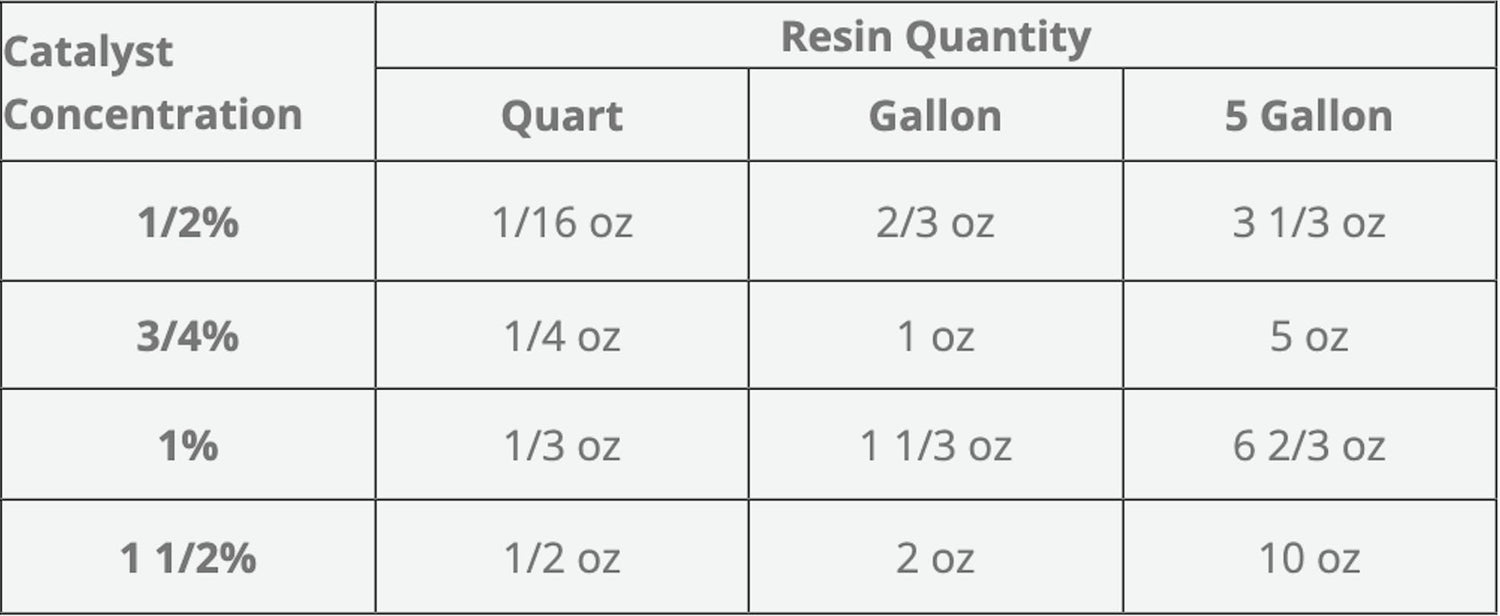 What's more, our laminating resin comes with supplied MEK-P catalyst. You can adjust the amount of hardener you add to the resin to control the gel time. When handling this resin, we recommend doing so in temperatures between 70-95°F for optimal results. When not in use, we suggest storing it in areas with temperatures below 77°F.