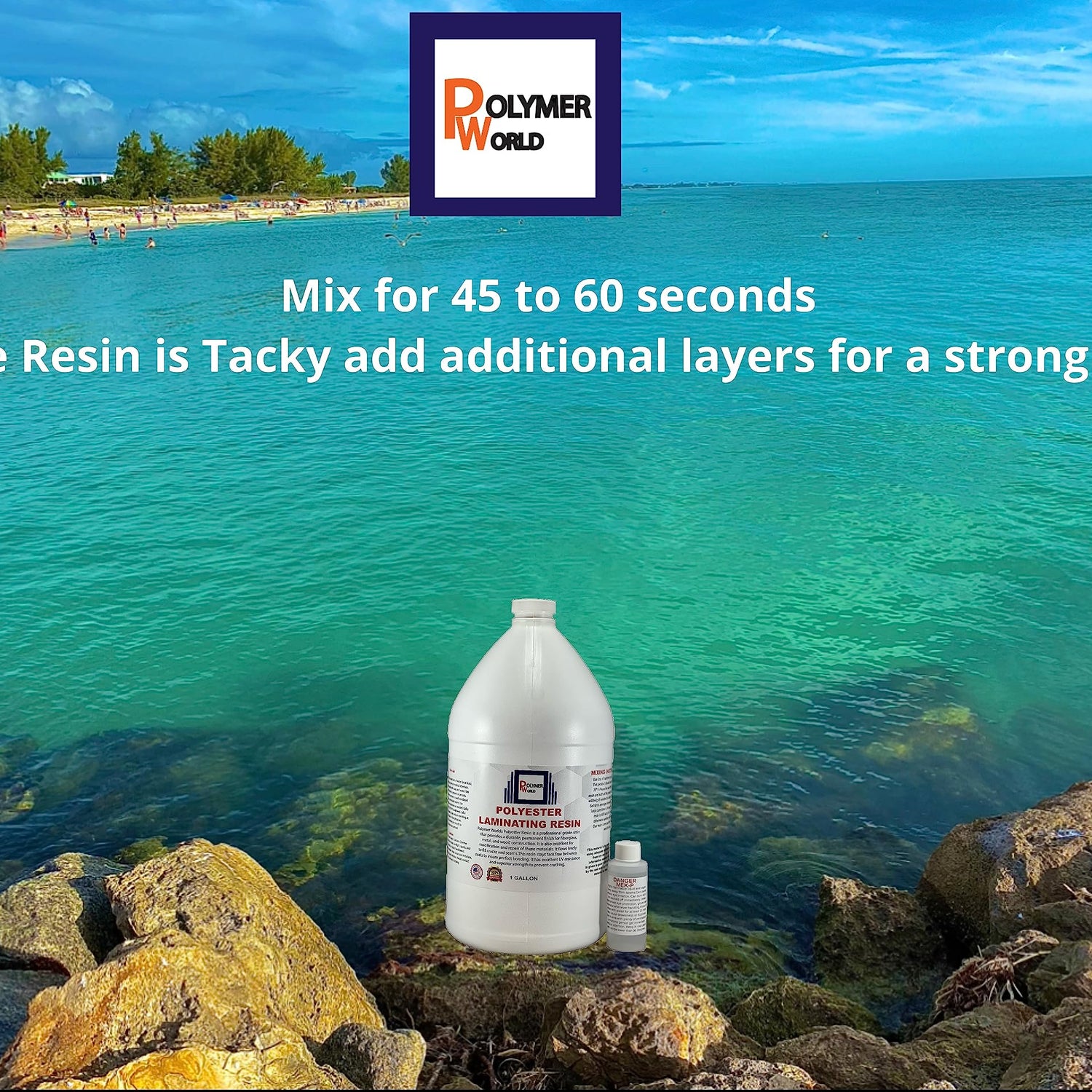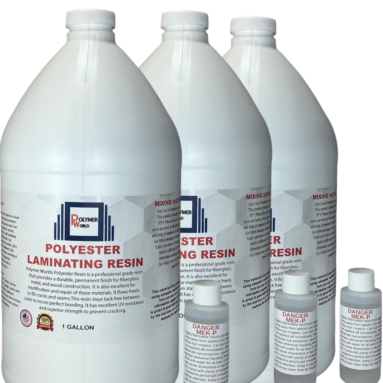 Polymer World- Polyester Resin 3 Gallon Kit with MEKP for Boats, Cars, Surfboards, RV, Pools,Canoes, Jetskis, Watercrafts (PR3G, 1)