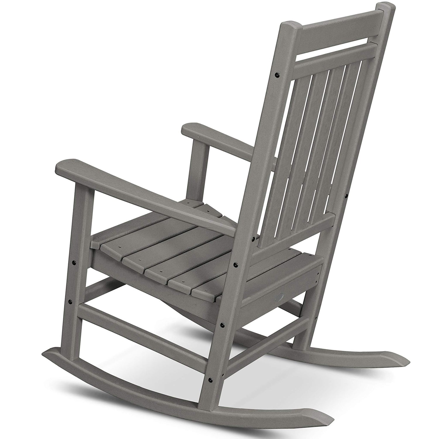 Details: Add a touch of tradition to your porch with the Plantation Porch Rocking Chair (R199). Made in Syracuse, Indiana, from genuine POLYWOOD lumber, this attractive rocking chair is both low-maintenance and eco-friendly. POLYWOOD lumber does not splinter, rot, or crack like natural wood, and resists food and beverage stains. Available in a range of UV-inhibiting colors, your Plantation Porch Rocking Chair never needs painting or staining. Like all POLYWOOD furniture, the Plantation Porch Rocking Chair comes with a 20-year residential warranty protecting against cracking, peeling, splintering and cracking. The chair weighs only 35 lbs, and measures 26.25x41.25x34 inches. A curved seat increases comfort and pairs well with the POLYWOOD Seat Cushion (XPWS0007).