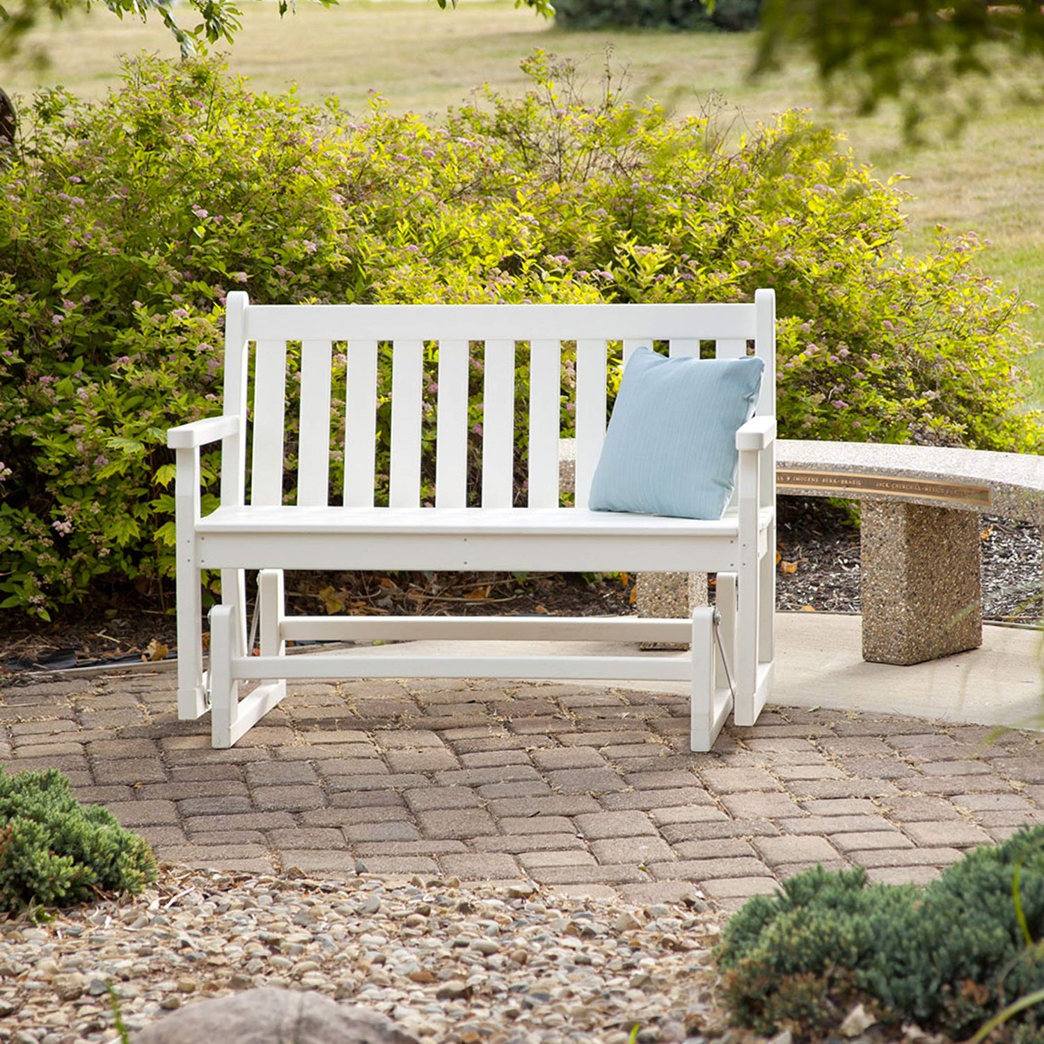Details: Enjoy an enchanting evening in your garden while gently swaying on this comfortable glider. POLYWOOD furniture is constructed of solid POLYWOOD lumber that's available in a variety of attractive, fade-resistant colors. It won't splinter, crack, chip, peel or rot and it never needs to be painted, stained or waterproofed. It's also designed to withstand nature's elements as well as to resist stains, corrosive substances, salt spray and other environmental stresses. Best of all, POLYWOOD furniture is made in the USA and backed by a 20-year warranty.