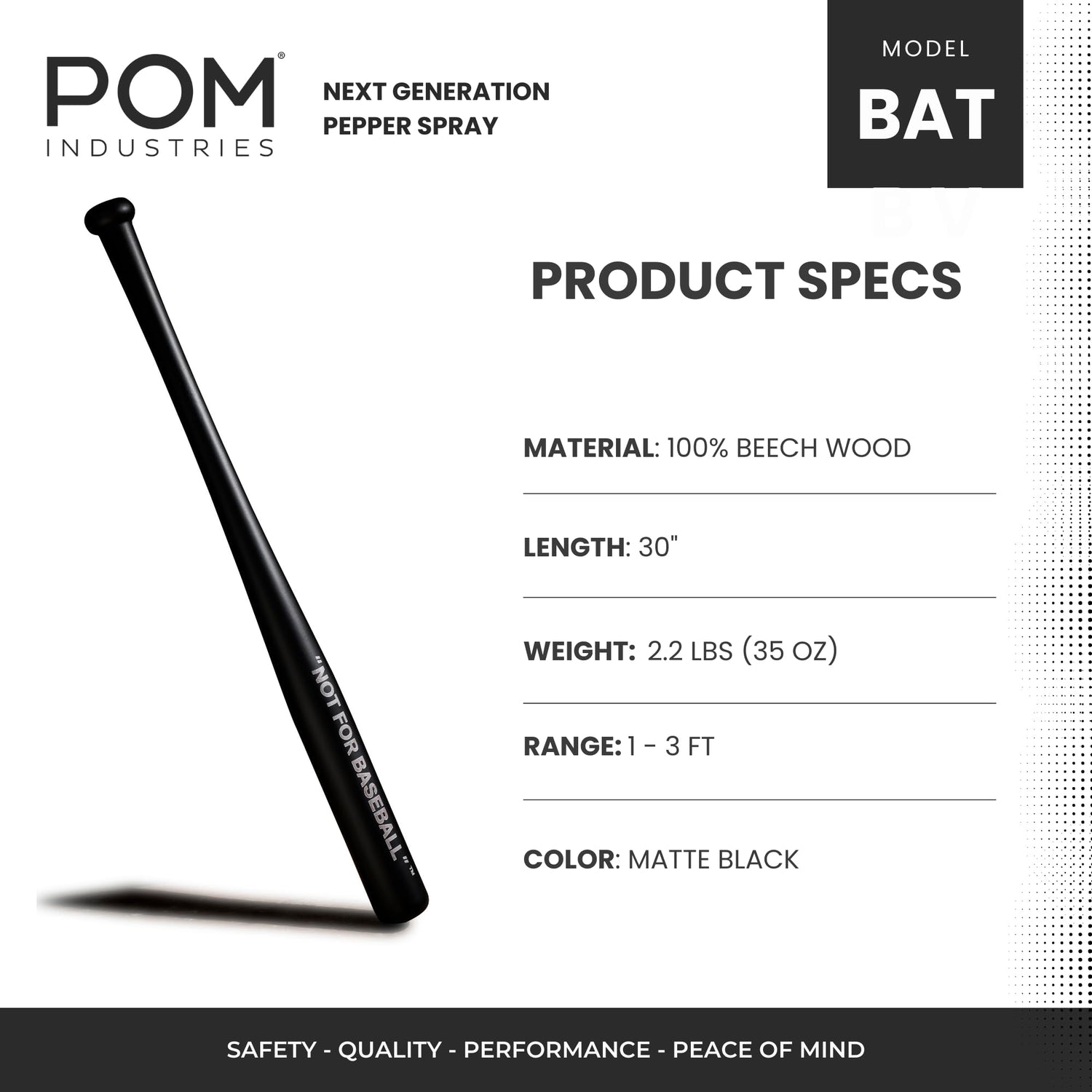 POM Baseball Bat - Not for Baseball Brand - Authentic Beech Wood - 30" Black - Softball, Batting Practice, Training, Self Defense, Home Security.