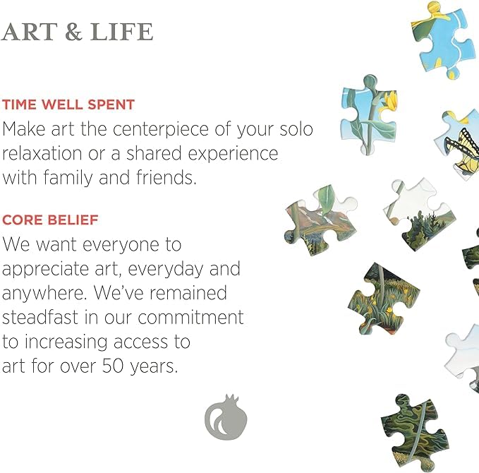 - Holiday Gifting: Featuring exclusive art—like national parks art, cat puzzle art and more— Pomegranate jigsaw puzzles for adults make unique gifts for holidays and birthdays.