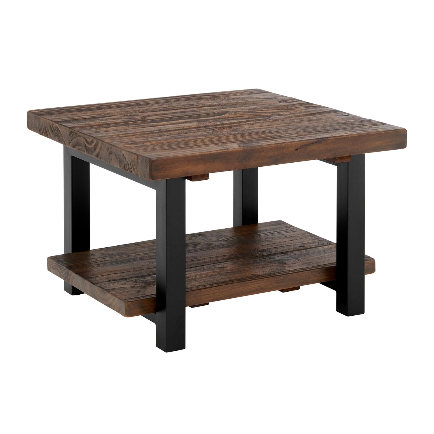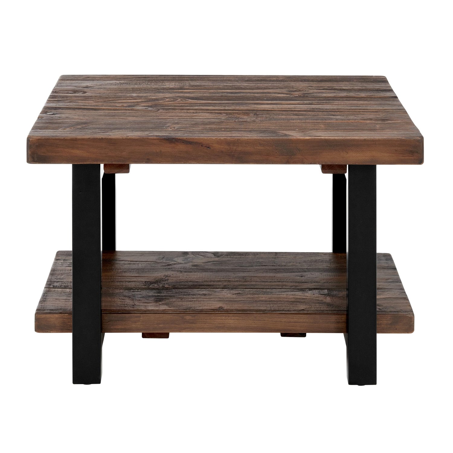 Pomona 27-Inch Rustic Square Coffee Table – Solid Pine Wood with Natural Weathered Finish and Industrial Metal Legs – Small Space Living Room Accent by Alaterre Furniture