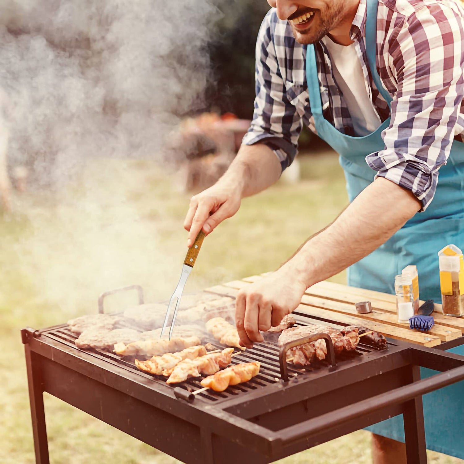Ponpon 2Pcs Meat Forks Stainless Steel Carving Fork with Wooden Handle Barbecue Fork for Cooking Kitchen (2)