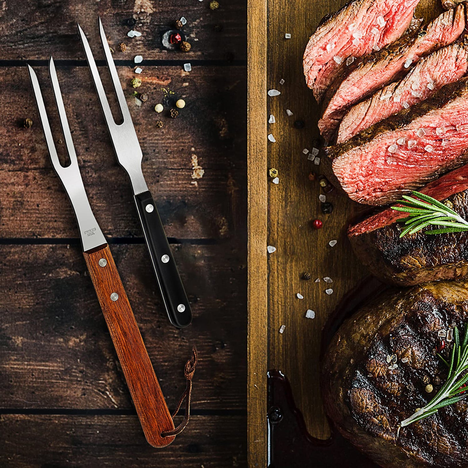- Quantity:There are 1pcs black handle meat fork + 1pcs brown handle meat fork in a package.