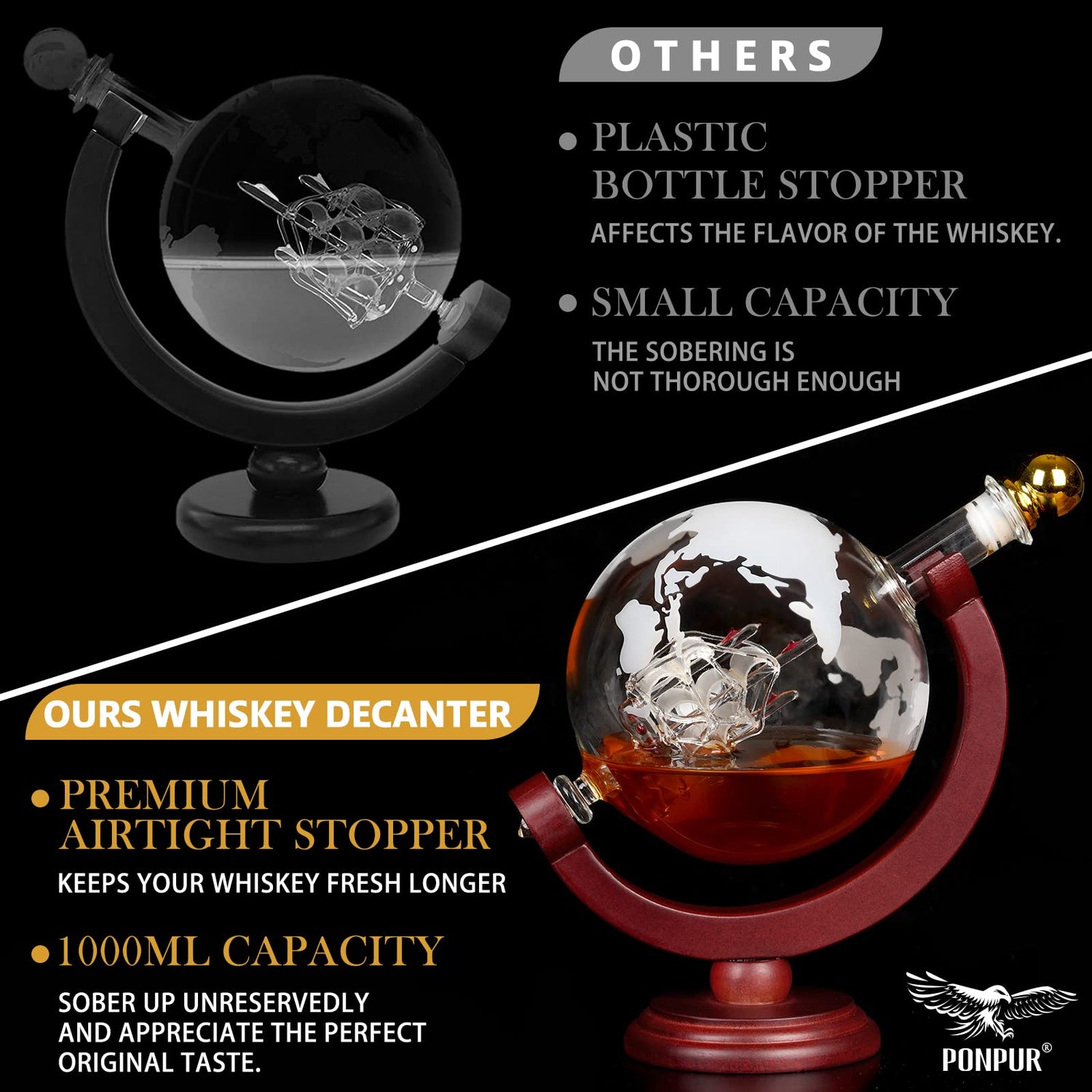 PONPUR Whiskey Globe Decanter, Gifts for Men Dad Father's Day, Anniversary Birthday Gift for Him Husband Boyfriend Grandpa, Unique Housewarming Presents Whisky Bourbon Decanter, 1000ml