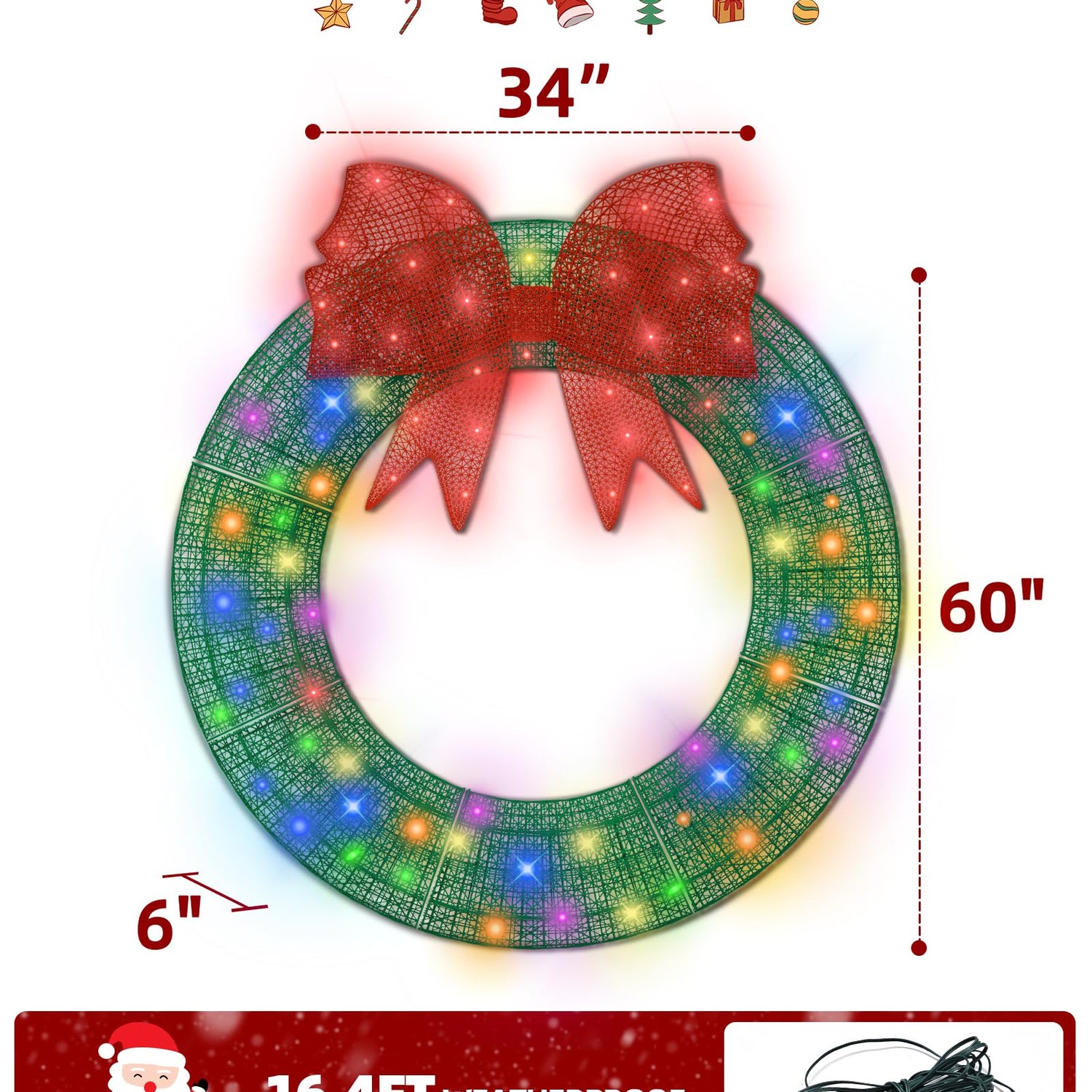 - COLORFUL LIGHTING: Unlike other wreaths which only have one color of lights, our outdoor lighted wreath has multiple colors of lights, making your yards more colorful.