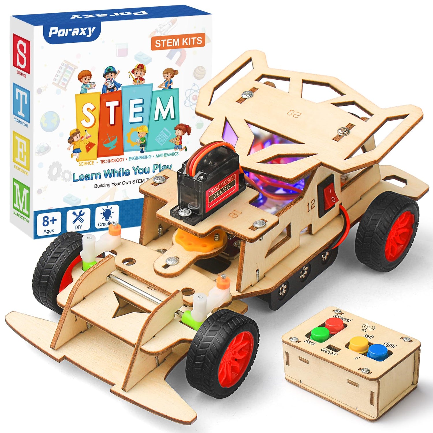 Poraxy STEM Toys for Boys Age 8-12, Building Remote Control Car, STEM Kits for Kids 8-10, Wooden 3D Puzzles 8-13 Science Projects Model, Birthday Gifts for 8 9 10 11 12 13 14 Year Old Teen Boys Girls