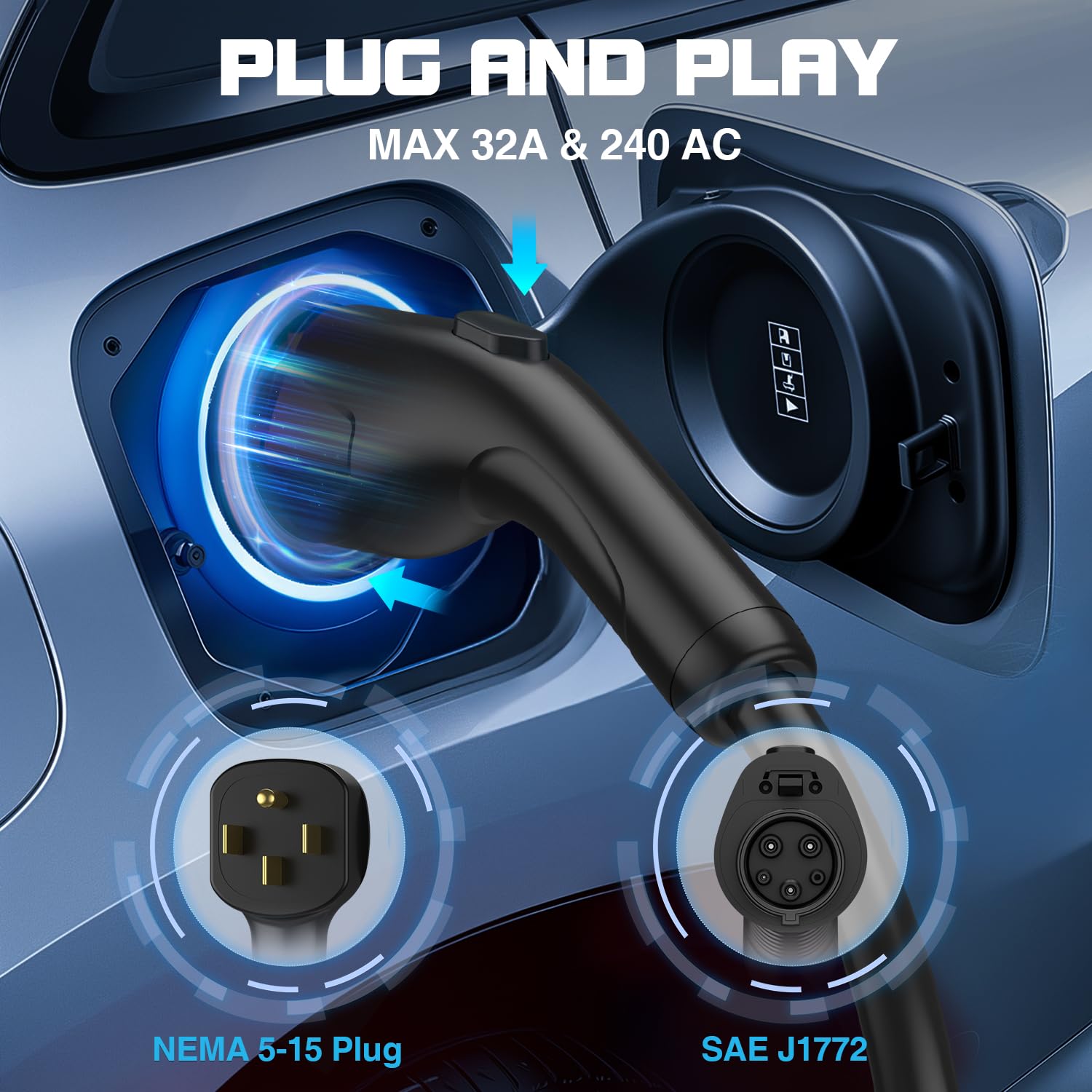 - 【Why Choose us】Compared to the level 1 charger, the level 2 EV car charger charges faster, is plug-and-play and is suitable for all J1772 vehicles. Tesla users can use an adapter to switch (not included), providing a charging experience of up to 32A 240V 7.4KW