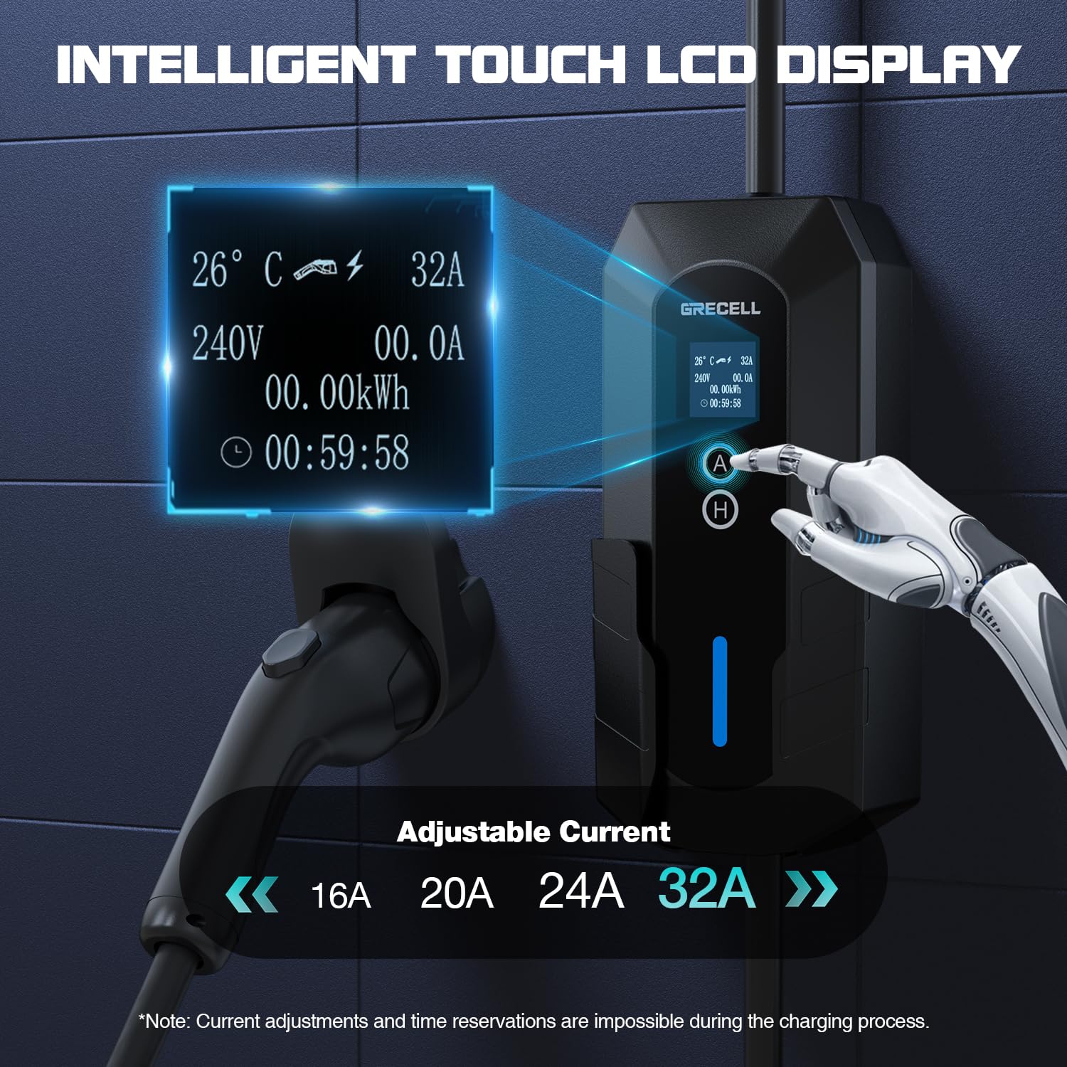 - 【Level 2 EV Charger】GRECELL 7.4KW, 32A EV charger Level 2 is designed to make electric vehicle charging faster and more efficient. The extra-long 25FT charging cable fits most garages and driveways, giving you more freedom to charge your car at home or outdoors