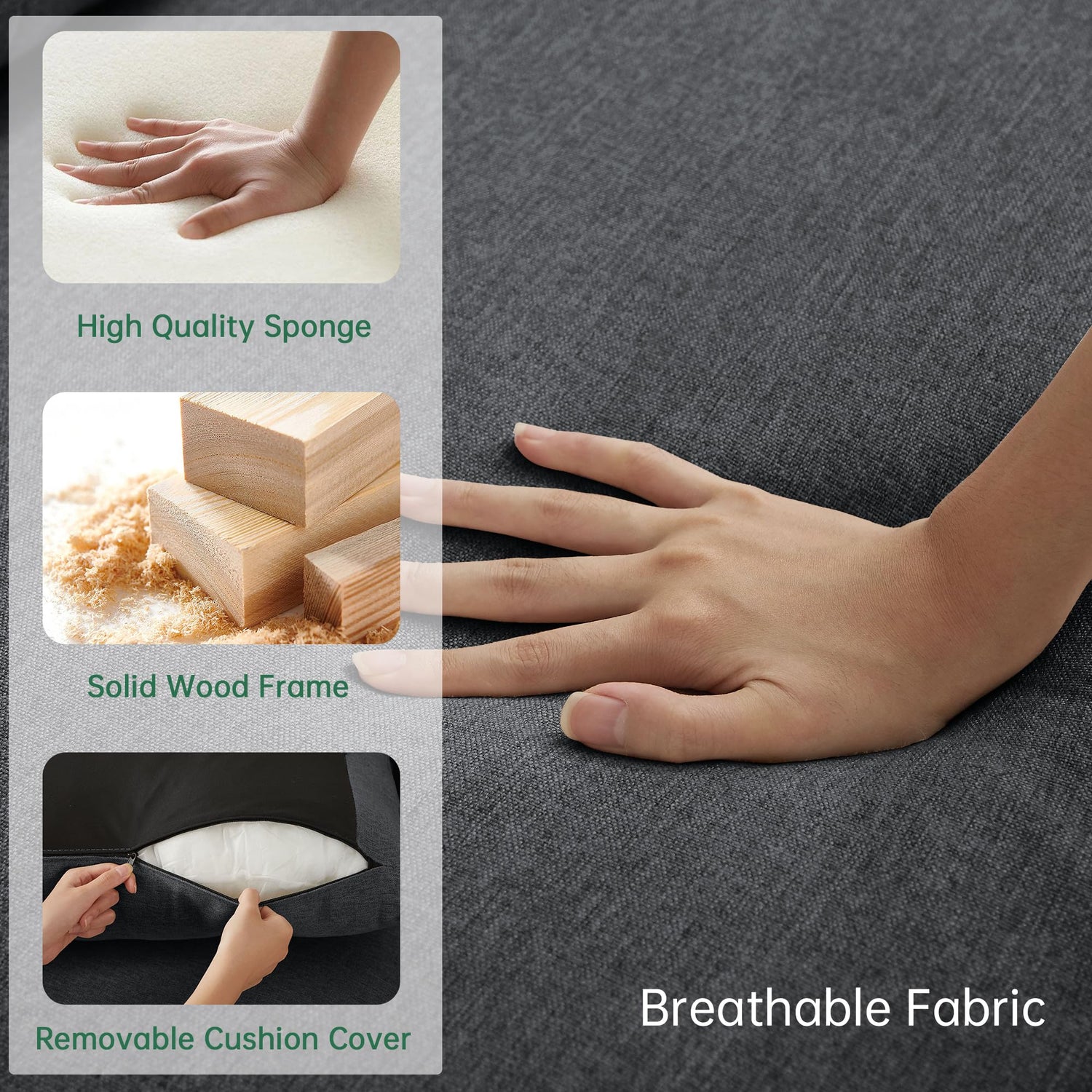 - Storage Space - The living room sofa set has two small with inbuilt storage to hide items such as pillows and blankets. There are also side storage bags on the armrest for remote controls and magzines. Also, you can buy the sofa with long bench if necessary