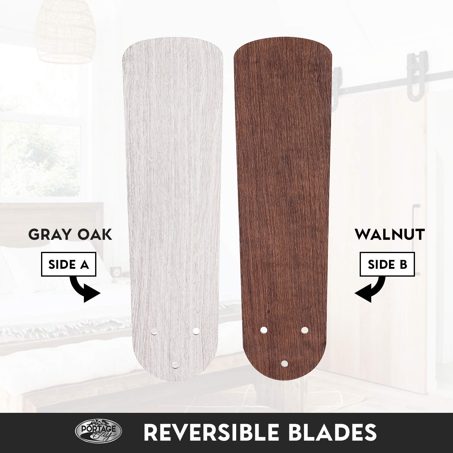 - TWO-BLADE FINISHES: Walnut and Chocolate Maple! Get the perfect finish match with our reversible ceiling fan blades. Each side has a unique finish to compliment your space.